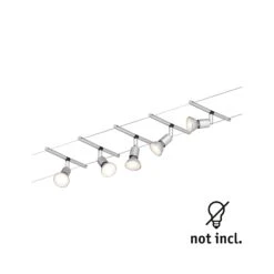 Paulmann Seilsystem Set Sheela Chrom Matt Mit 5 Spots Ohne Leuchtmittel, Max. 10W GU5,3