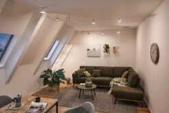 Der Einzelspot Circle in Chrom matt eignet sich besonders zur Ergänzung eines bestehenden Seilsystems. Das System kann sowohl an der Wand als auch an der Decke montiert werden und bietet dadurch grenzenlose Gestaltungsmöglichkeiten. Egal ob gerade, schräg oder verwinkelt – Seilsysteme passen in jeden Raum und sind die Problemlöser für schwierige Installationsbedingungen. Mit diesem System lässt sich eine optimale Lichtverteilung realisieren, bei steigendem Lichtbedarf lässt es sich problemlos erweitern. Für die Verteilung der Leuchten im gesamten Raum wird nur ein Stromauslass benötigt. Systeme mit der Technik 12V DC (Gleichspannung) lassen sich nicht über einen Wand-Einbaudimmer dimmen.
