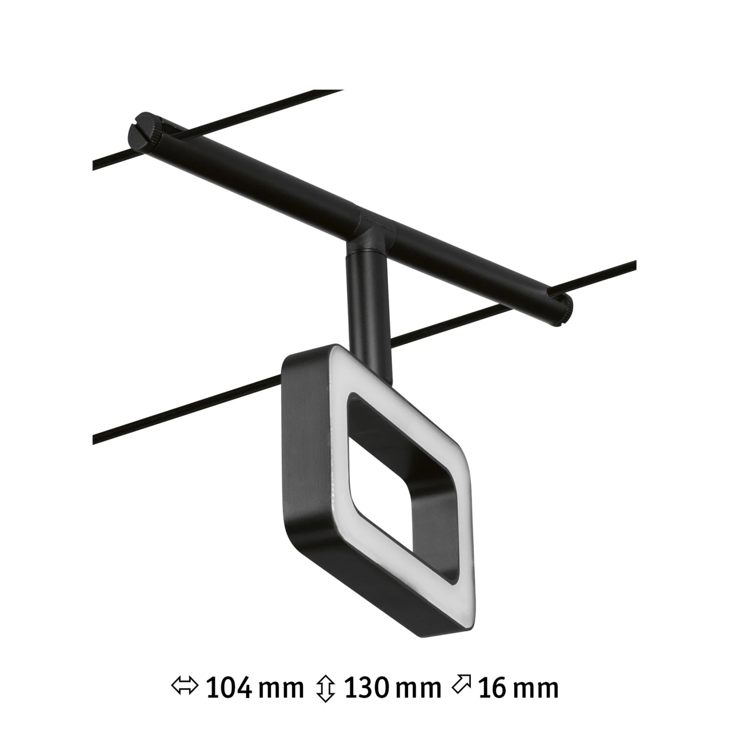 Der Einzelspot Frame in Schwarz matt/Chrom eignet sich besonders zur Ergänzung eines bestehenden Seilsystems. Das System kann sowohl an der Wand als auch an der Decke montiert werden und bietet dadurch grenzenlose Gestaltungsmöglichkeiten. Egal ob gerade, schräg oder verwinkelt – Seilsysteme passen in jeden Raum und sind die Problemlöser für schwierige Installationsbedingungen. Das Basisset lässt sich individuell durch Einzelspots, Umlenker und weiteres Zubehör ergänzen. Mit diesem System lässt sich eine optimale Lichtverteilung realisieren, bei steigendem Lichtbedarf lässt es sich problemlos erweitern. Für die Verteilung der Leuchten im gesamten Raum wird nur ein Stromauslass benötigt. Systeme mit der Technik 12V DC (Gleichspannung) lassen sich nicht über einen Wand-Einbaudimmer dimmen.