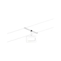 Der Einzelspot Frame in Weiß matt/Chrom eignet sich besonders zur Ergänzung eines bestehenden Seilsystems. Das System kann sowohl an der Wand als auch an der Decke montiert werden und bietet dadurch grenzenlose Gestaltungsmöglichkeiten. Egal ob gerade, schräg oder verwinkelt – Seilsysteme passen in jeden Raum und sind die Problemlöser für schwierige Installationsbedingungen. Das Basisset lässt sich individuell durch Einzelspots, Umlenker und weiteres Zubehör ergänzen. Mit diesem System lässt sich eine optimale Lichtverteilung realisieren, bei steigendem Lichtbedarf lässt es sich problemlos erweitern. Für die Verteilung der Leuchten im gesamten Raum wird nur ein Stromauslass benötigt. Systeme mit der Technik 12V DC (Gleichspannung) lassen sich nicht über einen Wand-Einbaudimmer dimmen.