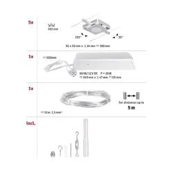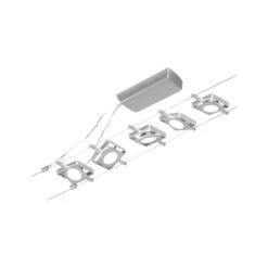 Die Serie MacLED in Chrom matt/Chrom mit 5 LED-Spots kann sowohl an der Wand als auch an der Decke montiert werden und bietet dadurch grenzenlose Gestaltungsmöglichkeiten. Egal ob gerade, schräg oder verwinkelt – Seilsysteme passen in jeden Raum und sind die Problemlöser für schwierige Installationsbedingungen. Das Basisset lässt sich individuell durch Einzelspots, Umlenker und weiteres Zubehör ergänzen. Das Seil mit einer Länge vom 10 m, kann in der Mitte geteilt werden, sodass das System auf max. 5 m gespannt werden kann. Mit diesem System lässt sich eine optimale Lichtverteilung realisieren, bei steigendem Lichtbedarf lässt es sich problemlos erweitern. Für die Verteilung der Leuchten im gesamten Raum wird nur ein Stromauslass benötigt. Systeme mit der Technik 12V DC (Gleichspannung) lassen sich nicht über einen Wand-Einbaudimmer dimmen.