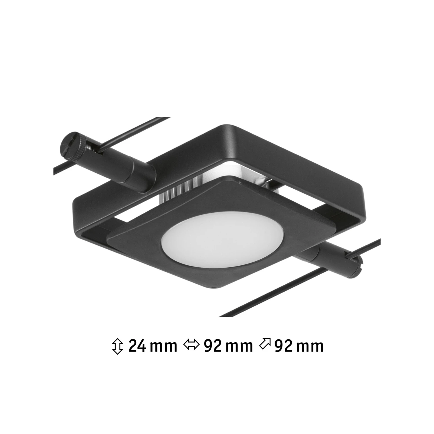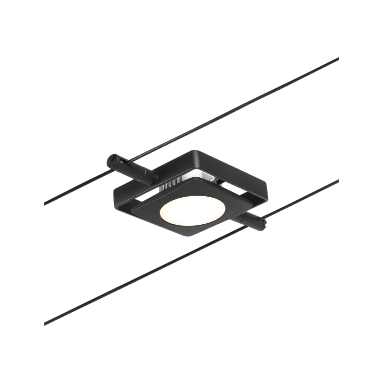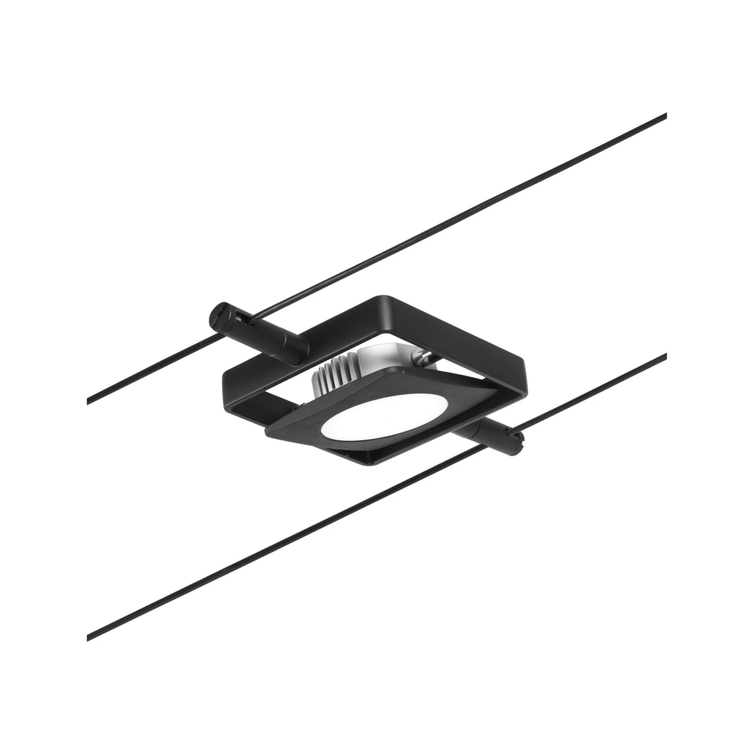 Der Einzelspot MacLED in Schwarz matt, Chrom eignet sich besonders zur Ergänzung eines bestehenden Seilsystems. Das System kann sowohl an der Wand als auch an der Decke montiert werden und bietet dadurch grenzenlose Gestaltungsmöglichkeiten. Egal ob gerade, schräg oder verwinkelt – Seilsysteme passen in jeden Raum und sind die Problemlöser für schwierige Installationsbedingungen. Mit diesem System lässt sich eine optimale Lichtverteilung realisieren, bei steigendem Lichtbedarf lässt es sich problemlos erweitern. Für die Verteilung der Leuchten im gesamten Raum wird nur ein Stromauslass benötigt. Systeme mit der Technik 12V DC (Gleichspannung) lassen sich nicht über einen Wand-Einbaudimmer dimmen.