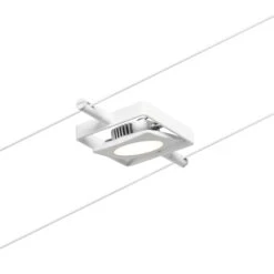 Der Einzelspot MacLED in Weiß matt, Chrom eignet sich besonders zur Ergänzung eines bestehenden Seilsystems. Das System kann sowohl an der Wand als auch an der Decke montiert werden und bietet dadurch grenzenlose Gestaltungsmöglichkeiten. Egal ob gerade, schräg oder verwinkelt – Seilsysteme passen in jeden Raum und sind die Problemlöser für schwierige Installationsbedingungen. Mit diesem System lässt sich eine optimale Lichtverteilung realisieren, bei steigendem Lichtbedarf lässt es sich problemlos erweitern. Für die Verteilung der Leuchten im gesamten Raum wird nur ein Stromauslass benötigt. Systeme mit der Technik 12V DC (Gleichspannung) lassen sich nicht über einen Wand-Einbaudimmer dimmen.