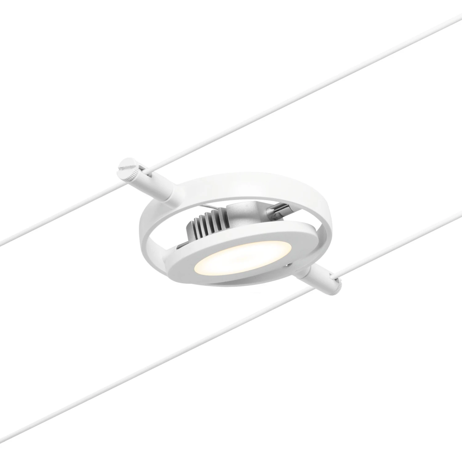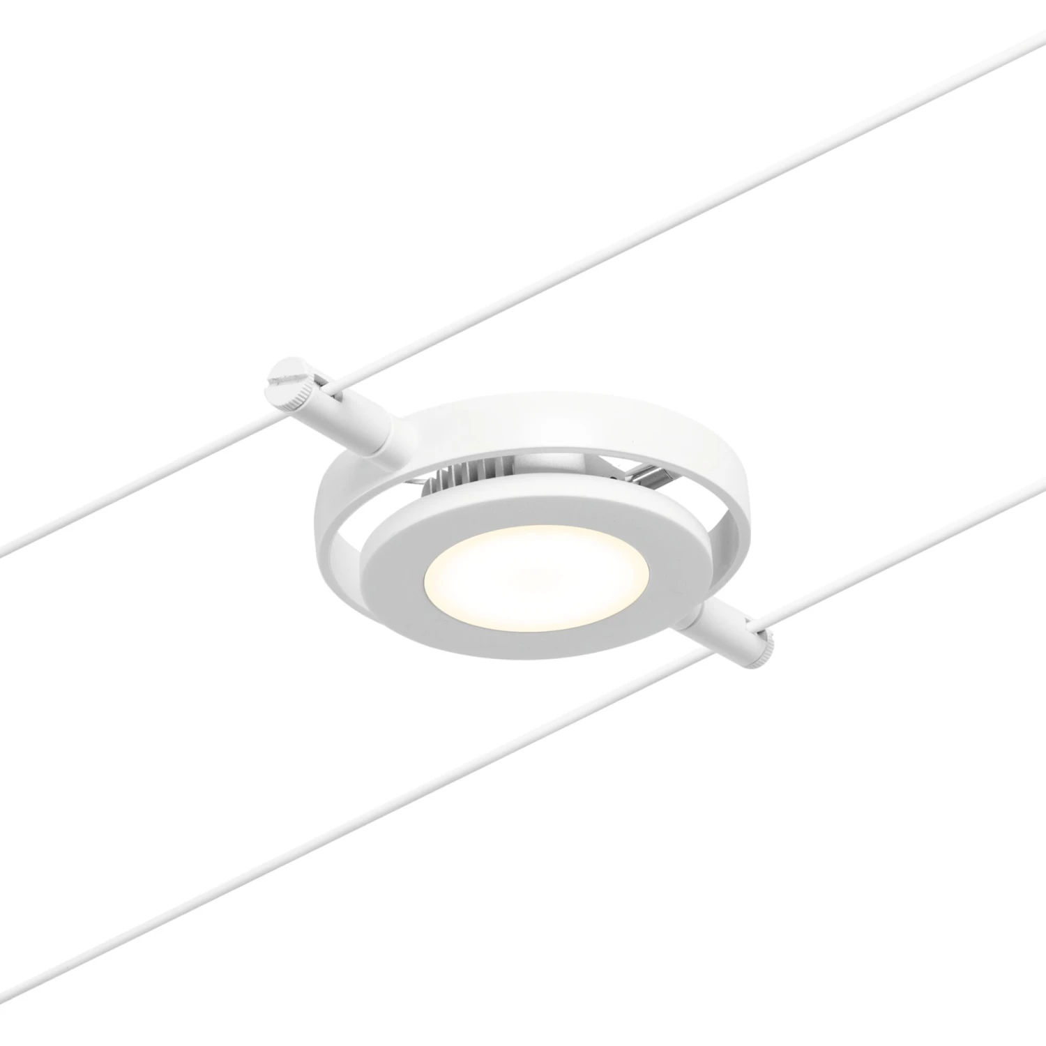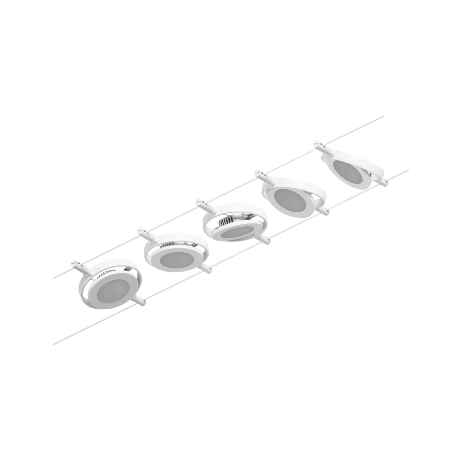 Die Serie RoundMac in Weiß/Chrom kann sowohl an der Wand als auch an der Decke montiert werden und bietet dadurch grenzenlose Gestaltungsmöglichkeiten. Egal ob gerade, schräg oder verwinkelt – Seilsysteme passen in jeden Raum und sind die Problemlöser für schwierige Installationsbedingungen. Das Basisset lässt sich individuell durch Einzelspots, Umlenker und weiteres Zubehör ergänzen. Das Seil mit einer Länge vom 10 m, kann in der Mitte geteilt werden, sodass das System auf max. 5 m gespannt werden kann. Mit diesem System lässt sich eine optimale Lichtverteilung realisieren, bei steigendem Lichtbedarf lässt es sich problemlos erweitern. Für die Verteilung der Leuchten im gesamten Raum wird nur ein Stromauslass benötigt. Systeme mit der Technik 12V DC (Gleichspannung) lassen sich nicht über einen Wand-Einbaudimmer dimmen.