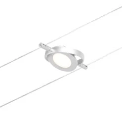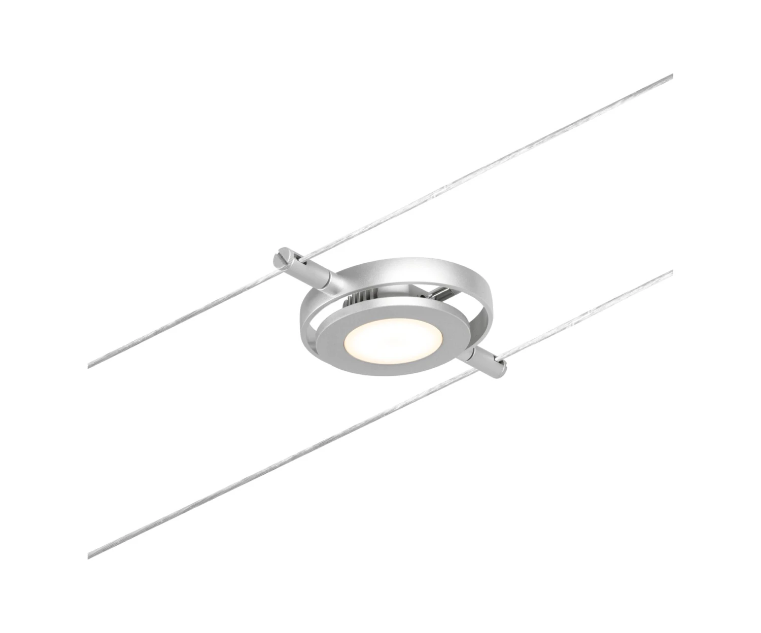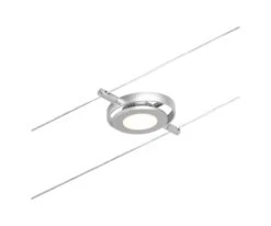 Der Einzelspot RoundMac in Chrom matt, Chrom eignet sich besonders zur Ergänzung eines bestehenden Seilsystems. Das System kann sowohl an der Wand als auch an der Decke montiert werden und bietet dadurch grenzenlose Gestaltungsmöglichkeiten. Egal ob gerade, schräg oder verwinkelt – Seilsysteme passen in jeden Raum und sind die Problemlöser für schwierige Installationsbedingungen. Das Basisset lässt sich individuell durch Einzelspots, Umlenker und weiteres Zubehör ergänzen. Mit diesem System lässt sich eine optimale Lichtverteilung realisieren, bei steigendem Lichtbedarf lässt es sich problemlos erweitern. Für die Verteilung der Leuchten im gesamten Raum wird nur ein Stromauslass benötigt. Systeme mit der Technik 12V DC (Gleichspannung) lassen sich nicht über einen Wand-Einbaudimmer dimmen.
