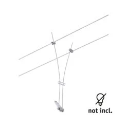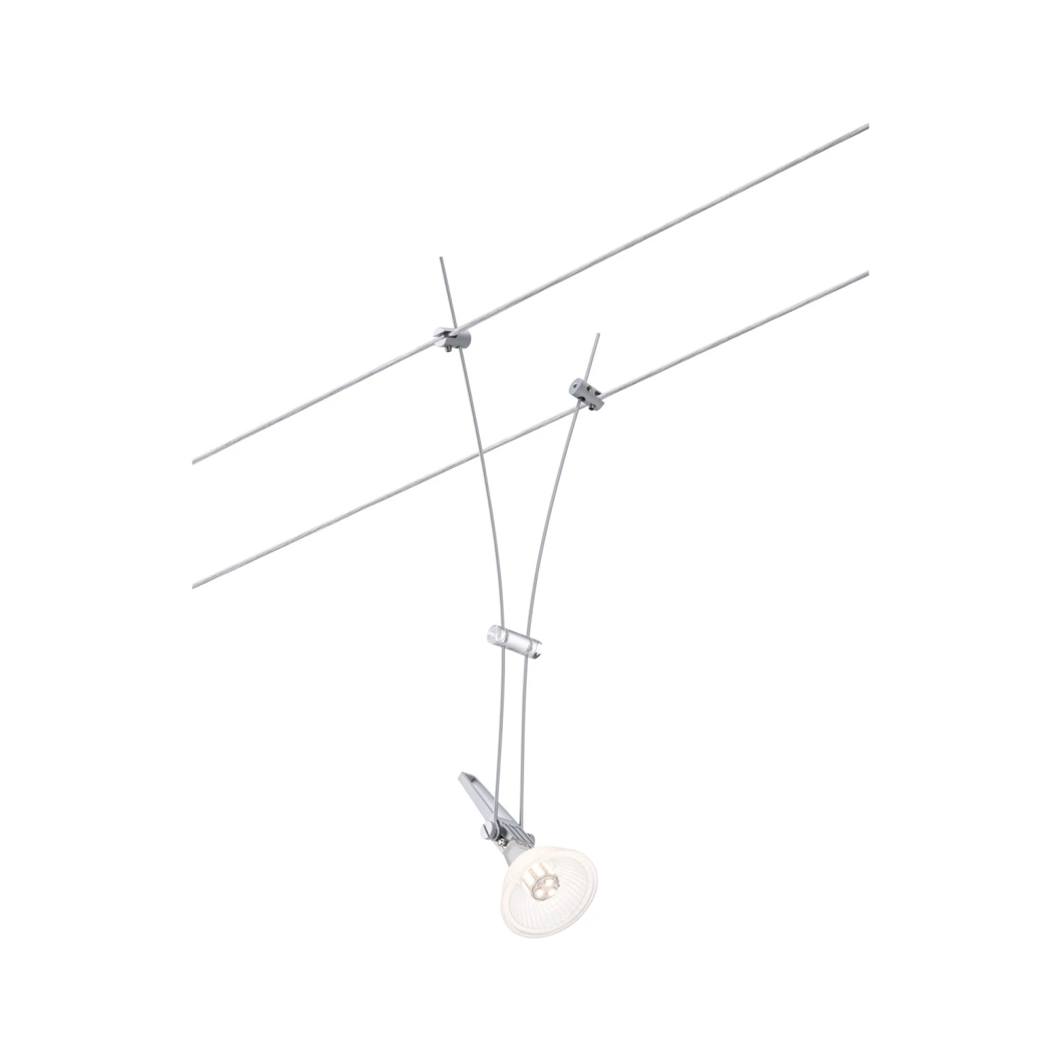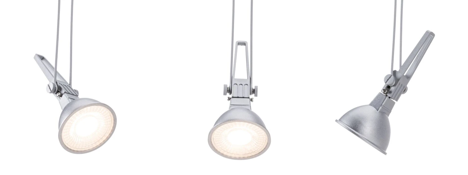 Der Einzelspot Comet in Chrom matt eignet sich besonders zur Ergänzung eines bestehenden Seilsystems. Das System kann sowohl an der Wand als auch an der Decke montiert werden und bietet dadurch grenzenlose Gestaltungsmöglichkeiten. Egal ob gerade, schräg oder verwinkelt – Seilsysteme passen in jeden Raum und sind die Problemlöser für schwierige Installationsbedingungen. Mit diesem System lässt sich eine optimale Lichtverteilung realisieren, bei steigendem Lichtbedarf lässt es sich problemlos erweitern. Für die Verteilung der Leuchten im gesamten Raum wird nur ein Stromauslass benötigt. Systeme mit der Technik 12V DC (Gleichspannung) lassen sich nicht über einen Wand-Einbaudimmer dimmen.