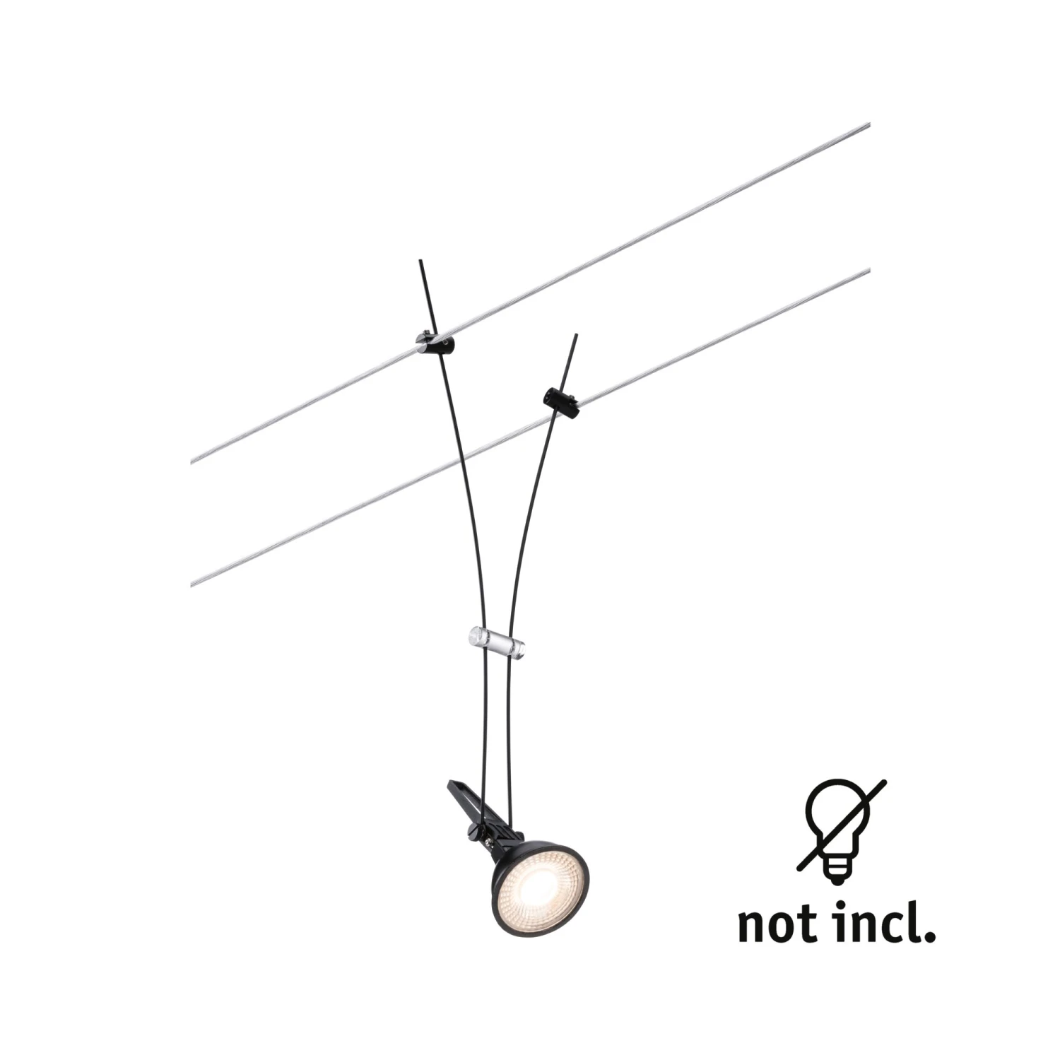 Der Einzelspot Comet in Schwarz matt eignet sich besonders zur Ergänzung eines bestehenden Seilsystems. Das System kann sowohl an der Wand als auch an der Decke montiert werden und bietet dadurch grenzenlose Gestaltungsmöglichkeiten. Egal ob gerade, schräg oder verwinkelt – Seilsysteme passen in jeden Raum und sind die Problemlöser für schwierige Installationsbedingungen. Mit diesem System lässt sich eine optimale Lichtverteilung realisieren, bei steigendem Lichtbedarf lässt es sich problemlos erweitern. Für die Verteilung der Leuchten im gesamten Raum wird nur ein Stromauslass benötigt. Systeme mit der Technik 12V DC (Gleichspannung) lassen sich nicht über einen Wand-Einbaudimmer dimmen.