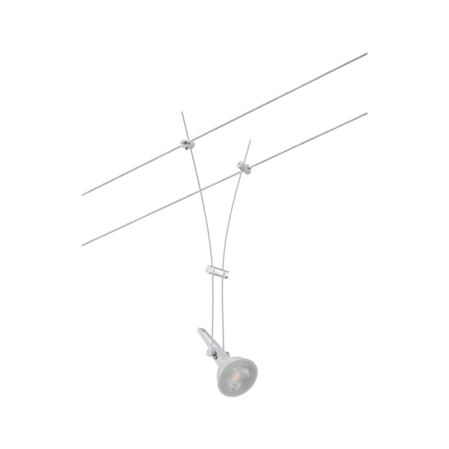 Der Einzelspot Comet in Weiß matt eignet sich besonders zur Ergänzung eines bestehenden Seilsystems. Das System kann sowohl an der Wand als auch an der Decke montiert werden und bietet dadurch grenzenlose Gestaltungsmöglichkeiten. Egal ob gerade, schräg oder verwinkelt – Seilsysteme passen in jeden Raum und sind die Problemlöser für schwierige Installationsbedingungen. Mit diesem System lässt sich eine optimale Lichtverteilung realisieren, bei steigendem Lichtbedarf lässt es sich problemlos erweitern. Für die Verteilung der Leuchten im gesamten Raum wird nur ein Stromauslass benötigt. Systeme mit der Technik 12V DC (Gleichspannung) lassen sich nicht über einen Wand-Einbaudimmer dimmen.