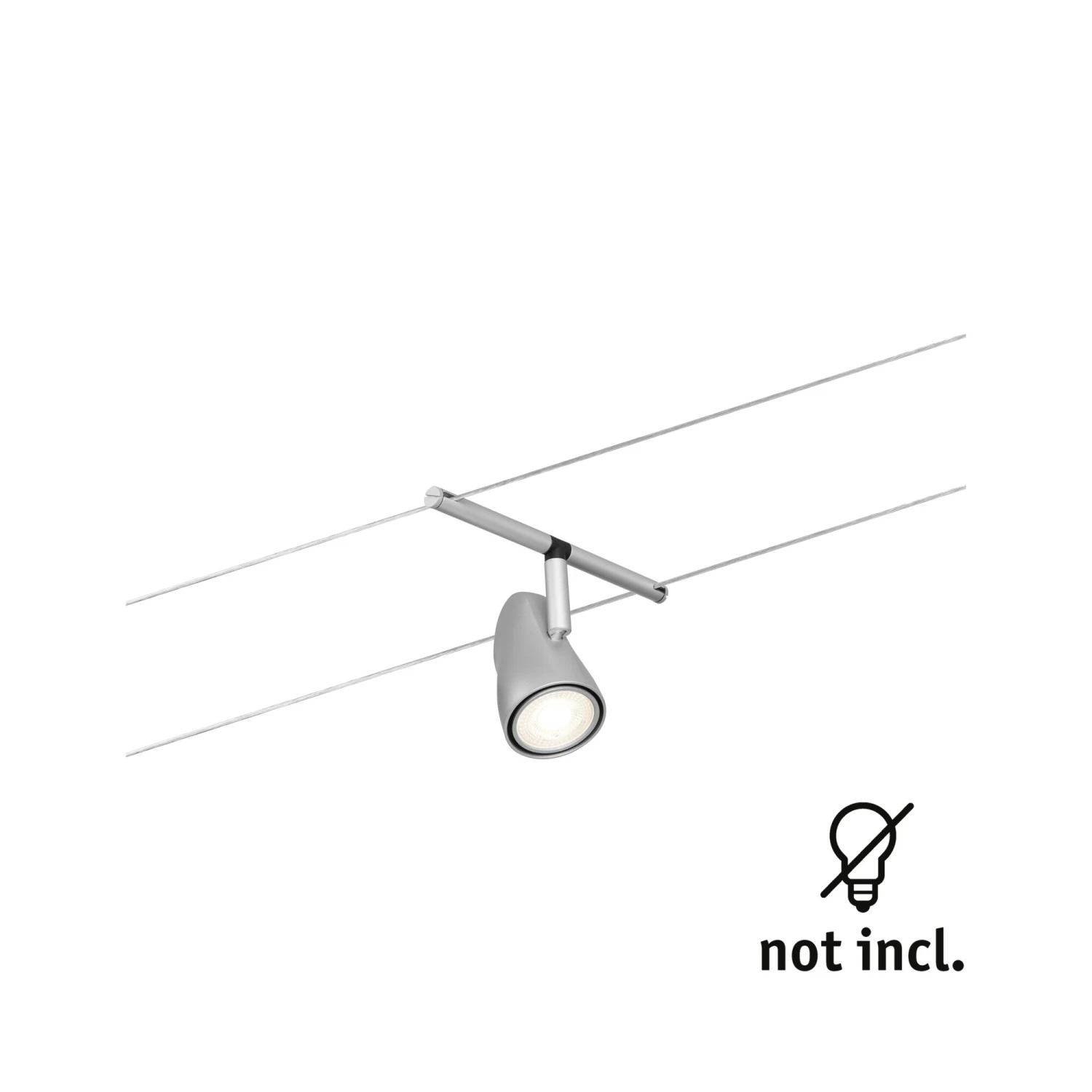 Der Einzelspot Cup in Chrom matt, Chrom eignet sich besonders zur Ergänzung eines bestehenden Seilsystems. Das System kann sowohl an der Wand als auch an der Decke montiert werden und bietet dadurch grenzenlose Gestaltungsmöglichkeiten. Egal ob gerade, schräg oder verwinkelt – Seilsysteme passen in jeden Raum und sind die Problemlöser für schwierige Installationsbedingungen. Mit diesem System lässt sich eine optimale Lichtverteilung realisieren, bei steigendem Lichtbedarf lässt es sich problemlos erweitern. Für die Verteilung der Leuchten im gesamten Raum wird nur ein Stromauslass benötigt. Systeme mit der Technik 12V DC (Gleichspannung) lassen sich nicht über einen Wand-Einbaudimmer dimmen.