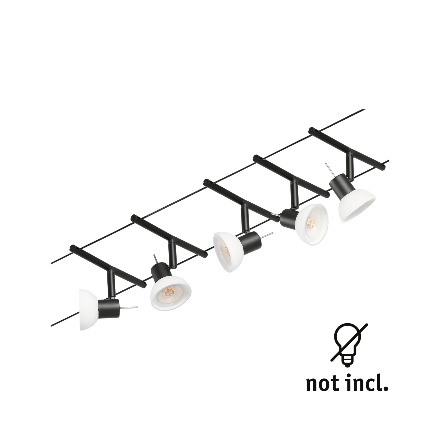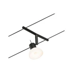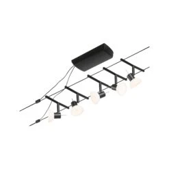 Die Serie Sheela in Schwarz matt/Chrom kann sowohl an der Wand als auch an der Decke montiert werden und bietet dadurch grenzenlose Gestaltungsmöglichkeiten. Egal ob gerade, schräg oder verwinkelt – Seilsysteme passen in jeden Raum und sind die Problemlöser für schwierige Installationsbedingungen. Das Basisset lässt sich individuell durch Einzelspots, Umlenker und weiteres Zubehör ergänzen. Das Seil mit einer Länge vom 10 m, kann in der Mitte geteilt werden, sodass das System auf max. 5 m gespannt werden kann. Mit diesem System lässt sich eine optimale Lichtverteilung realisieren, bei steigendem Lichtbedarf lässt es sich problemlos erweitern. Für die Verteilung der Leuchten im gesamten Raum wird nur ein Stromauslass benötigt. Systeme mit der Technik 12V DC (Gleichspannung) lassen sich nicht über einen Wand-Einbaudimmer dimmen.