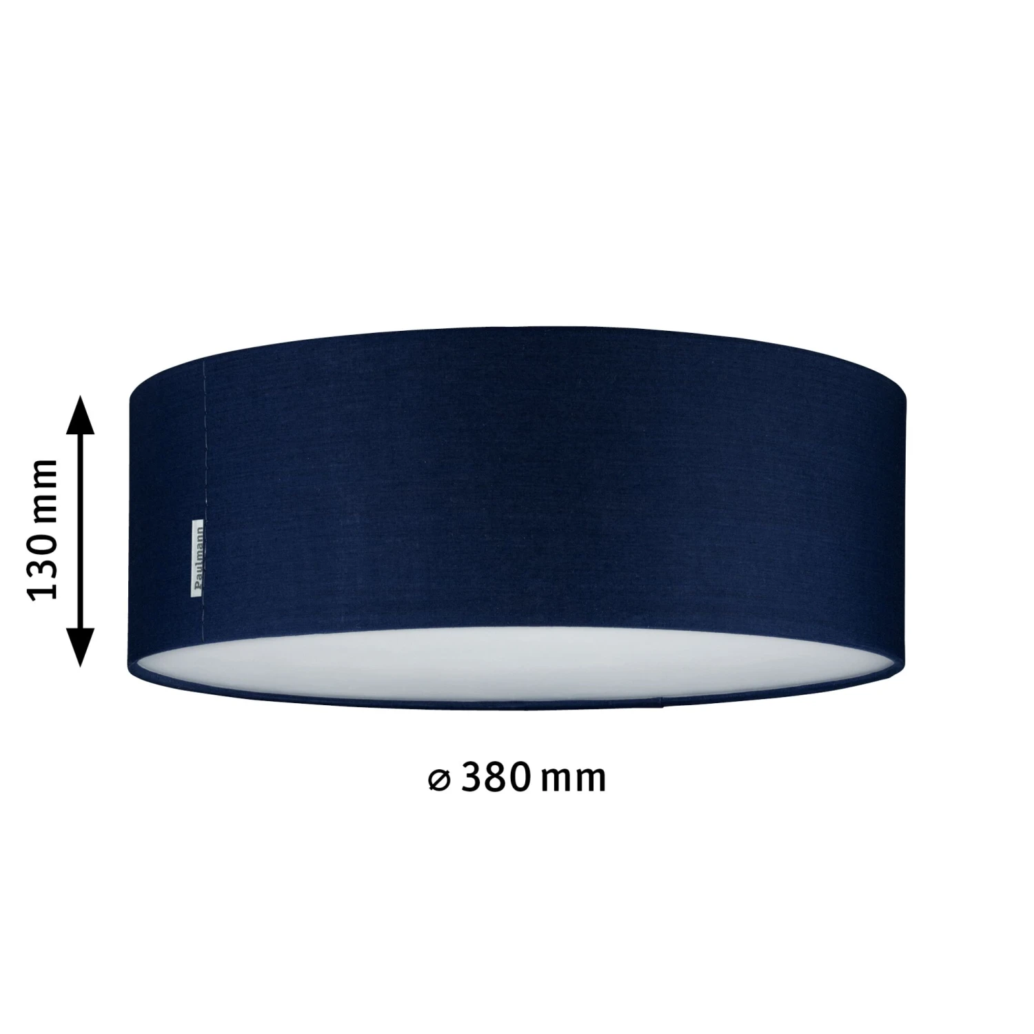 Die Mari Deckenleuchte aus modernem dunkelblauem Stoff sorgt für eine gleichmäßige Ausleuchtung von Wohn- und Schlafräumen. Der Lampenschirm schließt unten mit einer Diffusorscheibe ab, sodass niemand geblendet werden kann. Es können zwei passende Leuchtmittel mit E27-Sockel selbst gewählt werden.