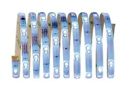 Das digitale LED-Stripe Set sorgt für vielfältige Lichteffekte. Die verschiedenen Farbmischungen in dynamischen Rhythmen lassen sich mit der mitgelieferten Fernbedienung steuern. Auch das Dimmen der Helligkeit ist möglich. Damit es Ihnen nicht zu bunt wird, sorgt eine Diode in Weiß (W) per Knopfdruck für wohnliches warmweißes Licht und macht das Mischen eines Weißtons aus den Farben Rot, Grün und Blau (RGB) überflüssig.