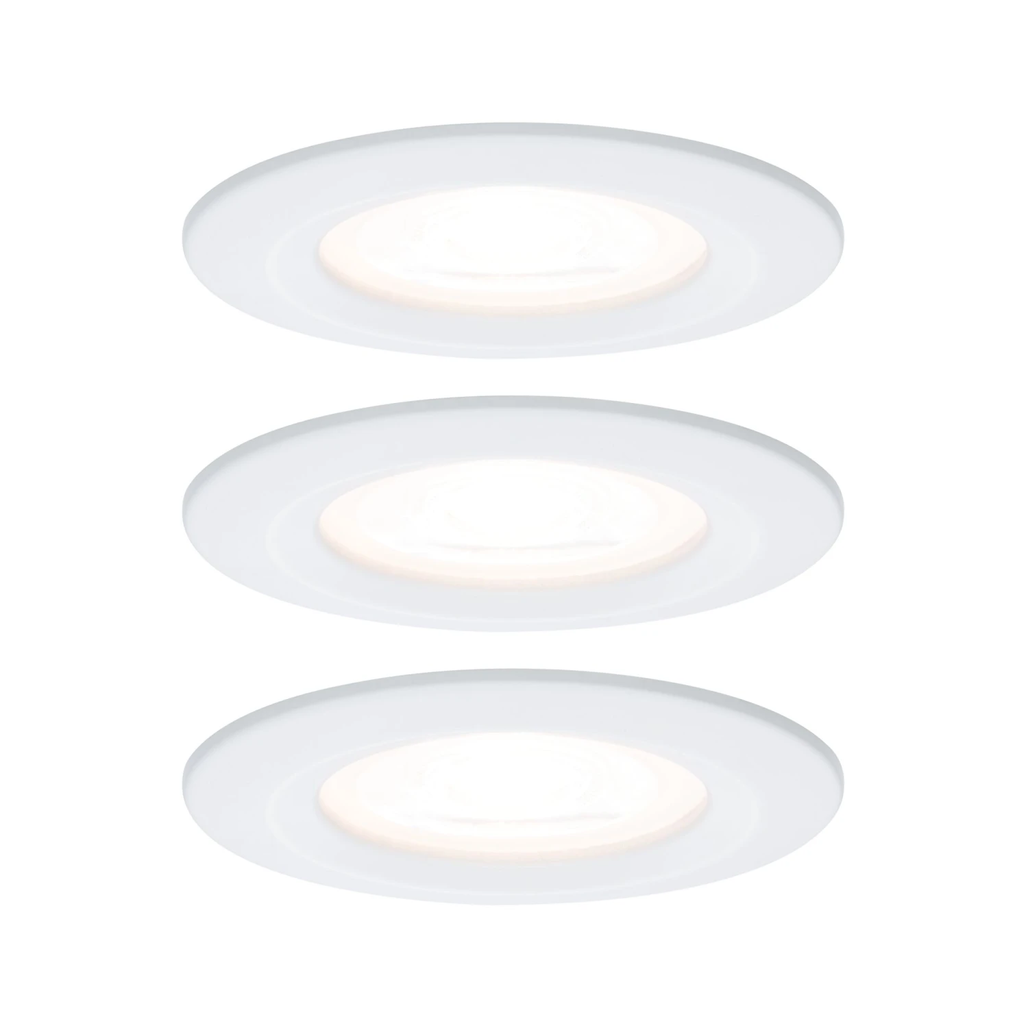 Nova Einbaustrahler 3×5,5W aus Alu Zink in Weiß matt, bieten Ihnen gutes Licht, stimmiges Design und hohe Energieeffizienz. Die puristische Optik wird nicht von Sprengringen gestört: Da das Leuchtmittel von hinten eingesetzt wird ist kein Sprengring notwendig. Dank 230V-Direktanschluss, können Sie die Leuchten ganz einfach uneingeschränkt miteinander verketten. Durch die unkomplizierte Fixierung mit Haltefedern, bleibt die Zimmerdecke auch nach mehrmaligem Ein- und Ausbau unbeschädigt. Im Lieferumfang sind effiziente und langlebige GU10 LED-Leuchtmittel enthalten, die mit ihrem warmweißen Licht für ein stimmungsvolles Ambiente sorgen.