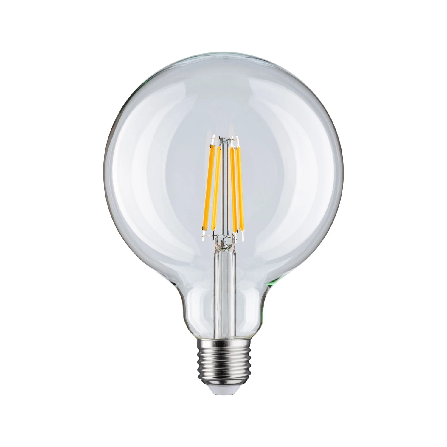 Das klare, vollglas LED Filament Globe mit 1055lm lässt sich dimmen und sorgt für ein strahlendes Licht in Wohnraumleuchten mit Schirm oder getöntem Glas. Mit ihrem E27-Sockel, einer Farbtemperatur von 2700K und einer Leistung von 9W ist das Leuchtmittel wie geschaffen für einen Einsatz als Hauptbeleuchtung in Wohnräumen.