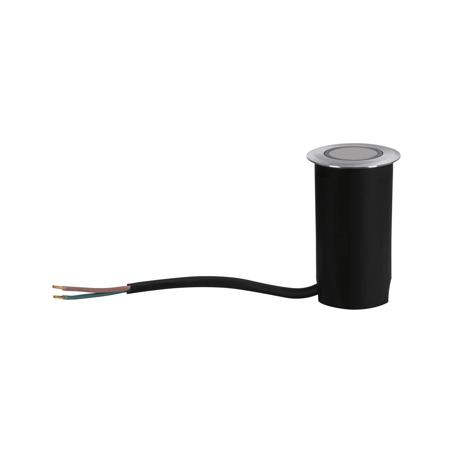 Der dekorative, runde Bodeneinbaustrahler ist wasser- und staubdicht und spendet warmweißes Licht bei jeder Wetterlage. Er ist nicht begeh- oder befahrbar.