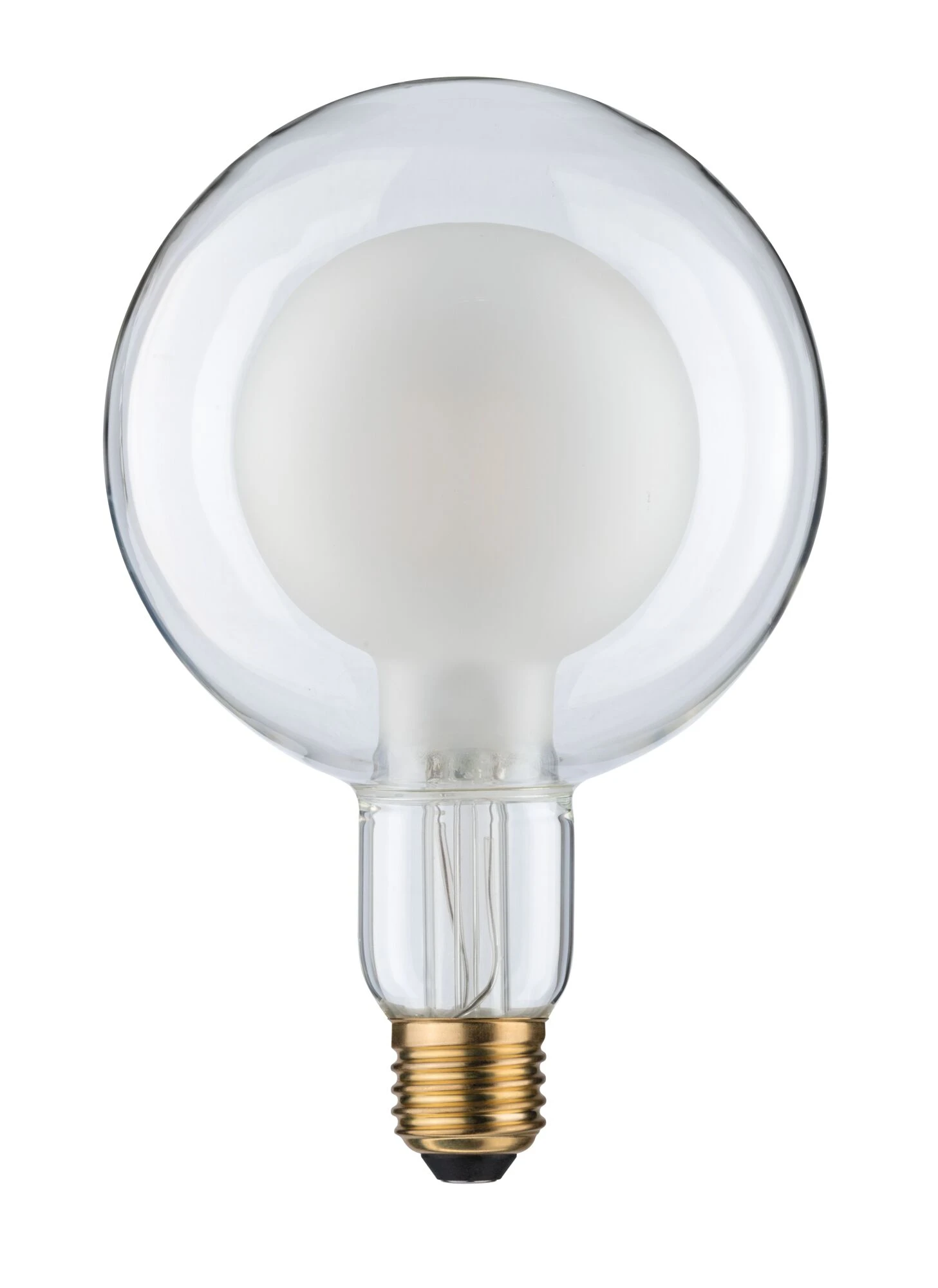 Die G125-Globenlampe in der Farbe Matt macht jede Leuchte zum besonderen Hingucker. Das innere Dekorglas wird von einer Globe aus Klarglas umhüllt. Die Lampe hat eine angenehm warmweiße Lichtfarbe und eignet sich für jede E27-Fassung.