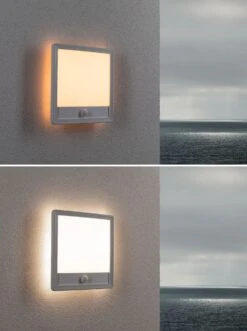 Sowohl an der Wand als auch an der Decke verbreitet das runde Panel Lamina mit dem weißen Rahmen und der weißen Innenfläche flächiges warmweißes Licht. Das zusätzliche Hintergrundlicht schafft eine angenehme Atmosphäre und setzt die Wand/Decke besonders in Szene. Sie trägt zur besseren Orientierung in der Dunkelheit bei und sorgt für mehr Sicherheit. In der Grundeinstellung leuchtet das Panel mit 20 % Helligkeit und 2.200 Kelvin. Sobald sich jemand annähert, wird das Außenlicht durch den verbauten Bewegungsmelder auf 100 % Helligkeit und 3.000 Kelvin geschaltet. Nach etwa 30 Sekunden wird wieder auf die gespeicherte Lichtfarbe und Helligkeit zurückgeschaltet. Wenn gewünscht kann über den Wandschalter auch das Orientierungslicht deaktiviert werden, dann wird die Leuchte nur über den Bewegungsmelder geschaltet. Zusätzlich kann auch der Bewegungsmelder deaktiviert werden, dann schaltet die Leuchte nur über den Dämmerungssensor an und aus. 2.200 Kelvin liegen außerhalb des sichtbaren Bereiches für die meisten Insekten, somit werden diese nicht von der zusätzlichen Lichtquelle angezogen und die Leuchte ist damit besonders insektenfreundlich.
