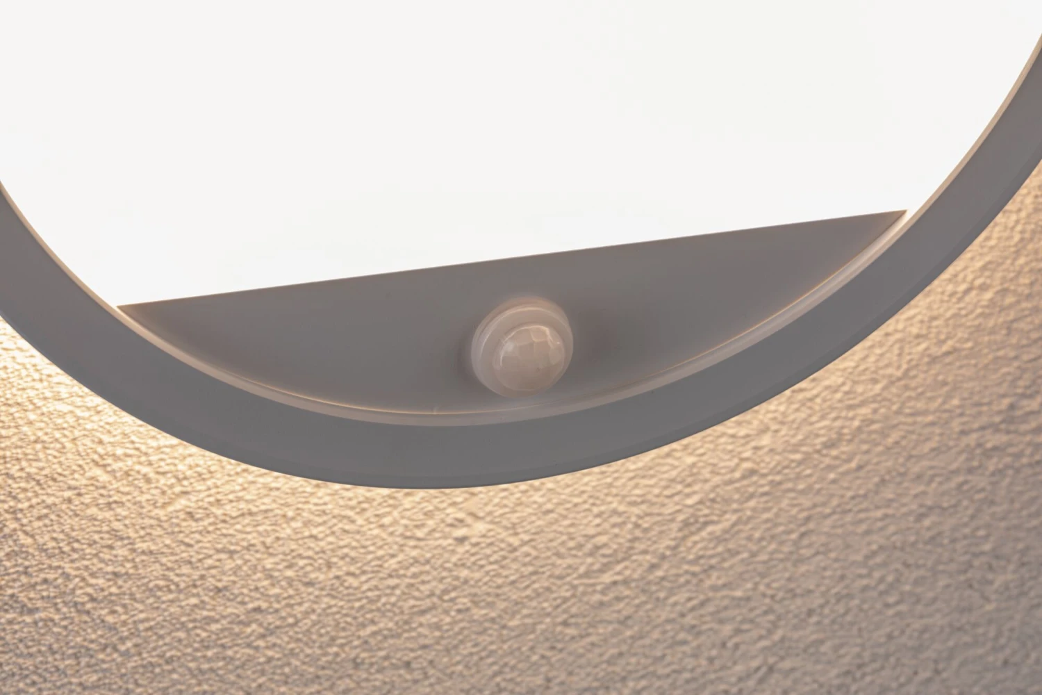Außenleuchten in Küstennähe unterliegen härteren Umwelteinflüssen als Außenleuchten im Landesinneren. Der Salzgehalt der Luft greift hier Metalle und Kunststoffe stärker an. Gefertigt aus hochwertigem Kunststoff korrodiert das Außenpanel Lamina in den Abmessungen 280mm nicht in der Nähe des Meeres. Sowohl an der Wand als auch an der Decke verbreitet das runde Panel mit dem weißen Rahmen und der weißen Innenfläche flächiges warmweißes Licht. Das zusätzliche Hintergrundlicht schafft eine angenehme Atmosphäre und setzt die Wand/Decke besonders in Szene. Der Bewegungsmelder sorgt dafür, dass das Licht bei Dunkelheit automatisch angeht, sobald sich jemand annähert. Die verschiedenen Funktionen des Bewegungsmelders lassen sich über einen Schalter an der Leuchte einstellen.