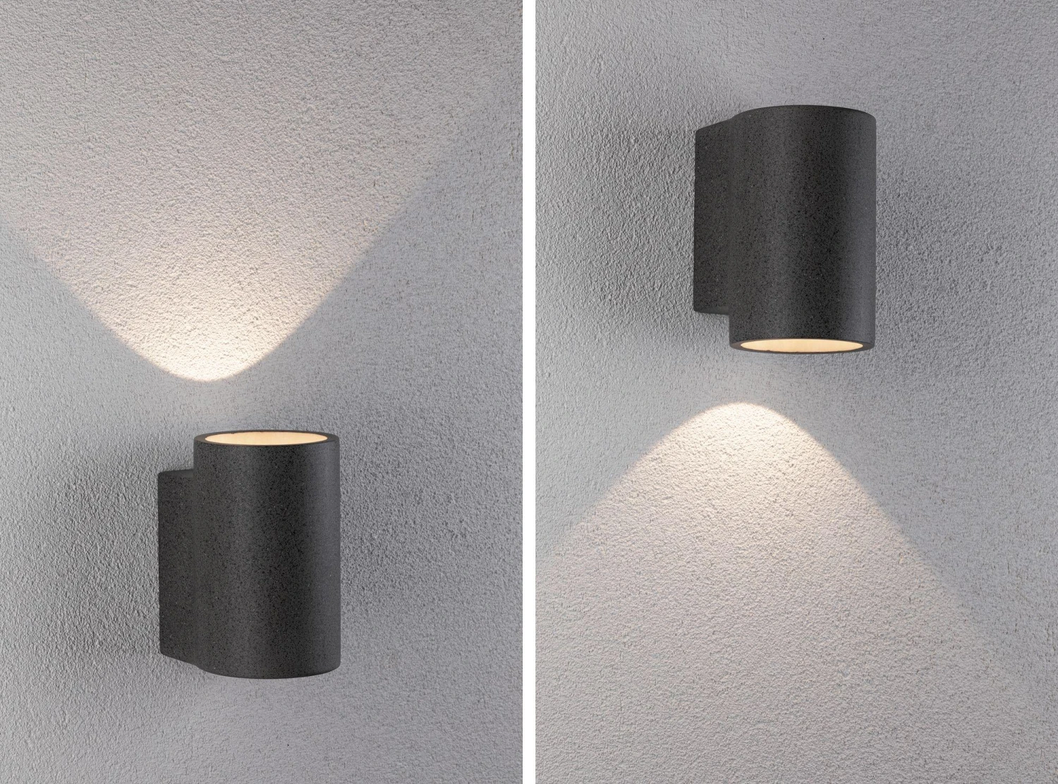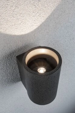 Die Wandaufbauleuchte Concrea aus schwarzen Sandstein mit einer Leistung von 6,8 Watt ist absolut korrosionsbeständig und ein echter Blickfang an der Fassade. Sie setzt attraktive Lichtakzente an Hauswänden oder Eingangsbereichen und sorgt so für eine bessere Orientierung rund ums Haus. Zudem ist sie robust und dank effizienter LED-Technik sehr wartungsarm und langlebig.
