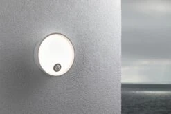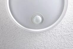 Die Außenwandleuchte Platomo mit Bewegungsmelder in Weiß bringt Licht an die Außenwände. Die robuste 230V-Wandleuchte mit einer Leistung von 14,5W leuchtet den Eingangsbereich gleichmäßig und sicher aus. Die Oberfläche der Leuchte ist besonders korrosionsbeständig. Daher wird sie von der salzhaltigen Luft weniger angegriffen. Mit einem IP-Schutz 44 ist die Wandleuchte spritzwassergeschützt. Dank des integrierten Bewegungsmelders wird das Licht automatisch eingeschaltet, sobald sich jemand nähert. Die Leuchtdauer ist einstellbar.