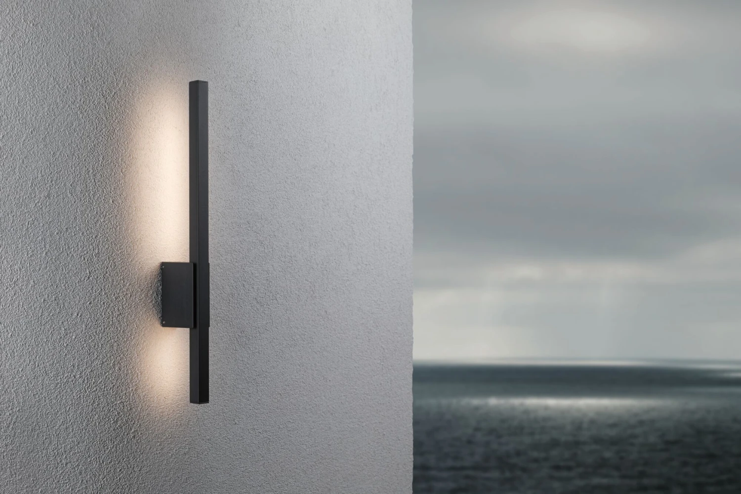 Außenleuchten in Küstennähe unterliegen härteren Umwelteinflüssen als Außenleuchten im Landesinneren. Der Salzgehalt der Luft greift hier Metalle und Kunststoffe stärker an. Die Außenwandleuchte Stan mit einer Höhe von 60 cm findet ihre Anwendung vor allem an Außenwänden von Wohnhäusern in Küstennähe. Die anthrazitfarbene Oberfläche der Leuchte ist besonders korrosionsbeständig. Daher wird die Leuchte von der salzhaltigen Luft weniger angegriffen. Mit einem IP-Schutz 44 ist die Leuchte spritzwassergeschützt. Das warmweiße Licht setzt die Außenwand besonders in Szene.