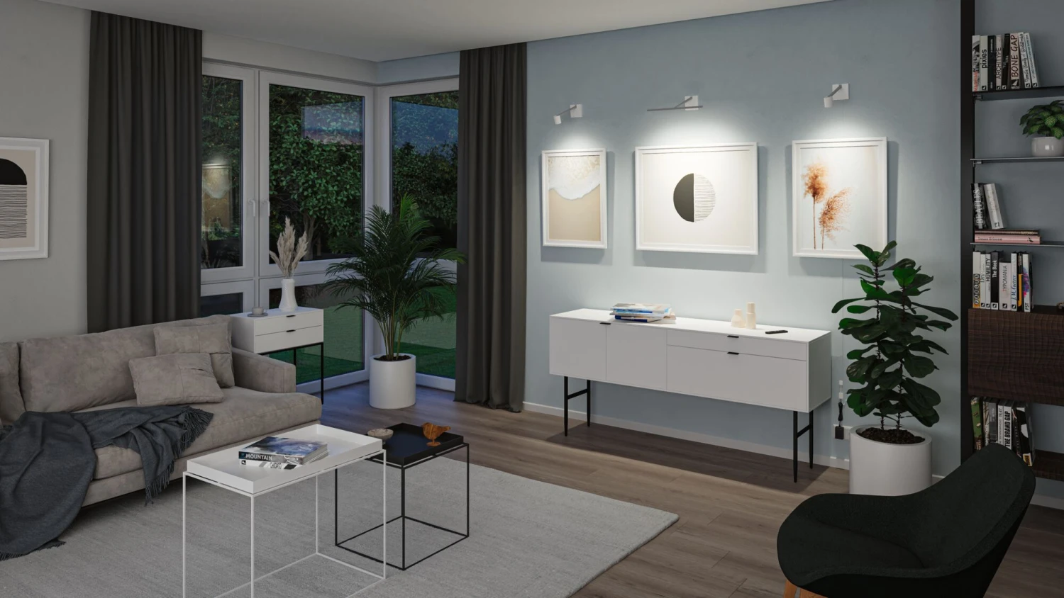 - Dekorative Lichteffekte setzen die Wand in Szene