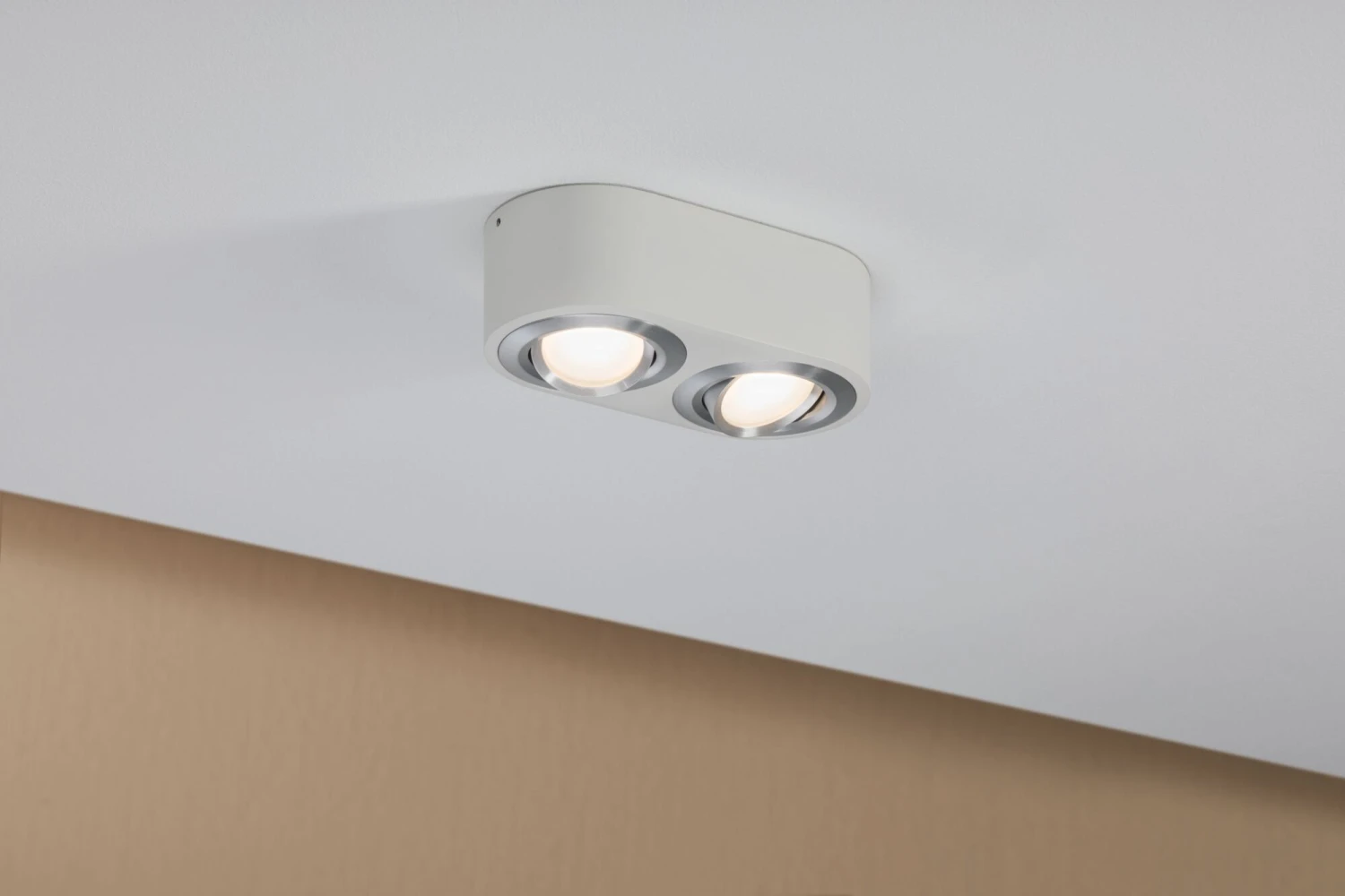 Dimmen ohne Dimmer – die 2-flammige Deckenleuchte Argun lässt sich durch mehrfaches Betätigen eines handelsüblichen Lichtschalters in drei Stufen dimmen. Zudem besticht sie durch reduziertes Design und die Spots lassen sich nach Bedarf ausrichten. In weiteren Ausführungen erhältlich.