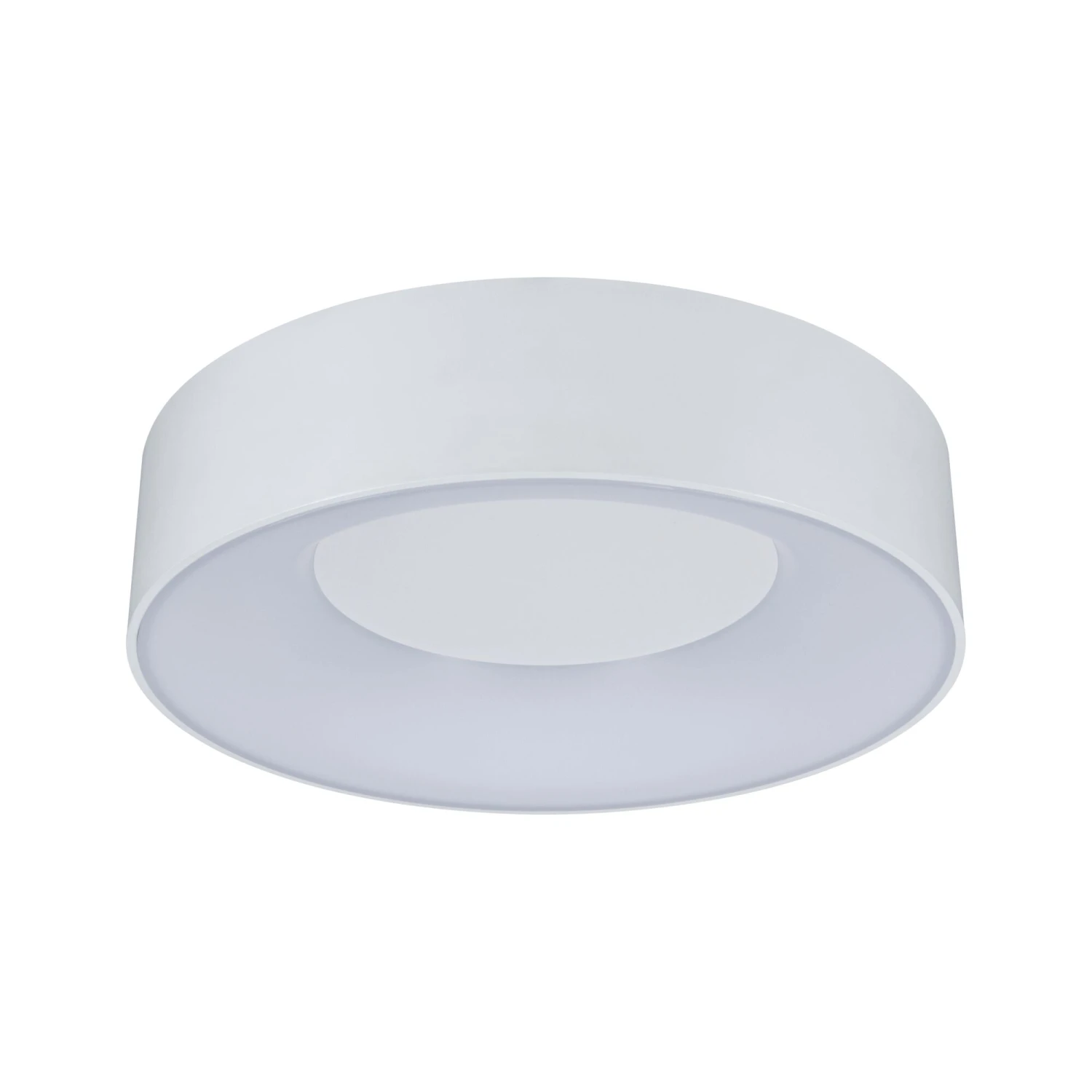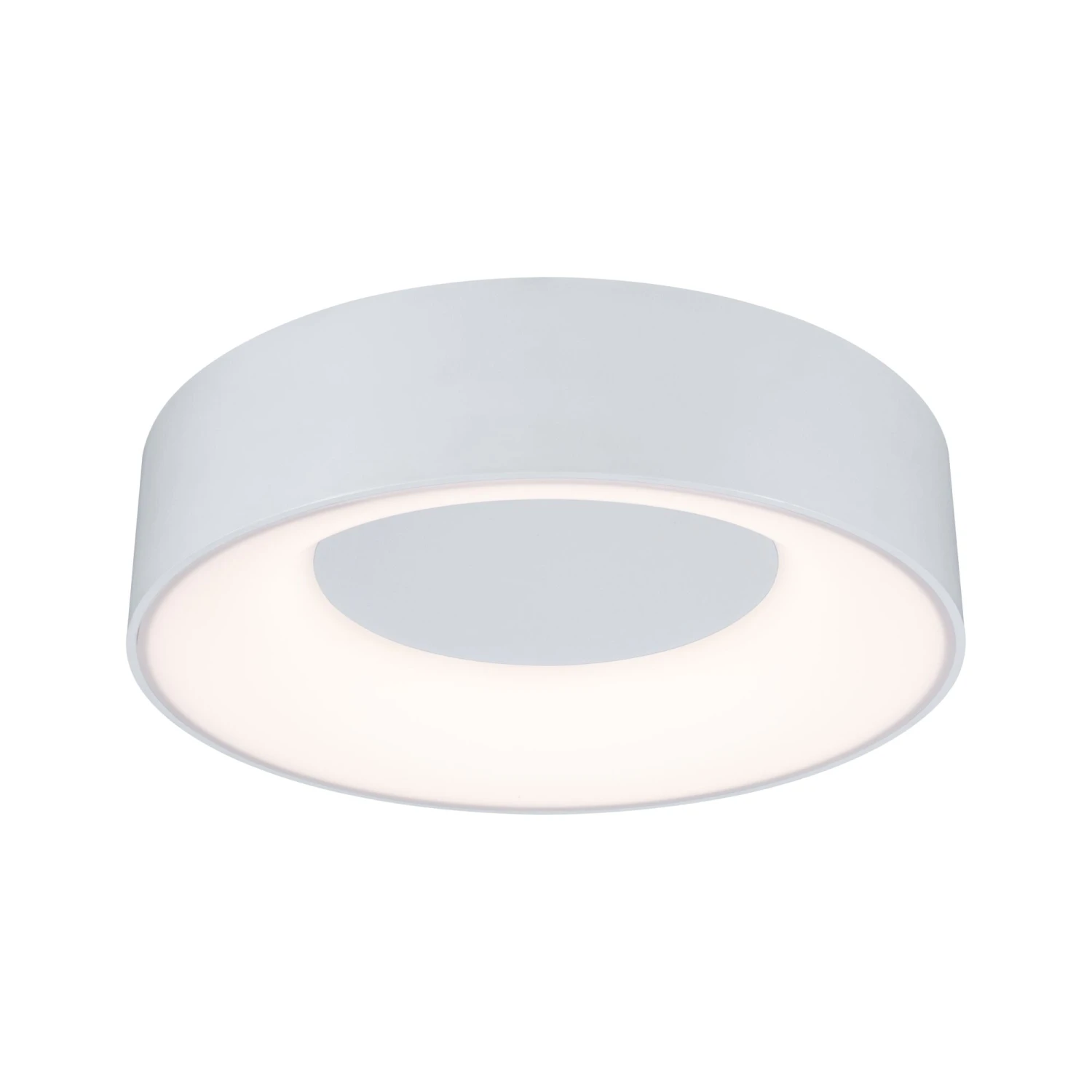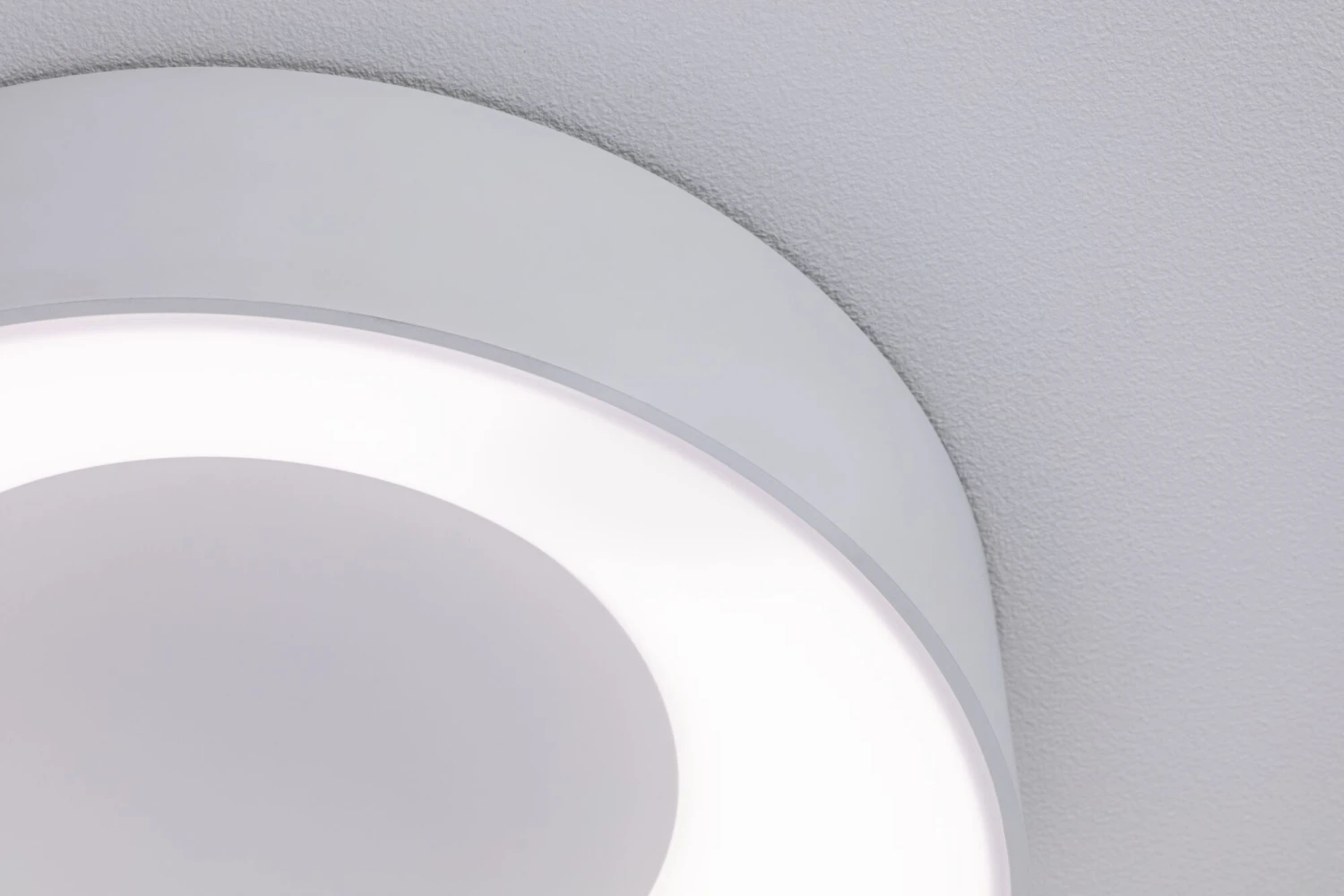 Die Deckenleuchte Casca Weiß mit einer Leistung von 16W liefert einen besonderen Lichteffekt: Im eingeschalteten Zustand leuchtet nur der innere Rand, aus der Mitte tritt kein Licht aus. Durch mehrfaches Drücken des Lichtschalters lässt sich die Lichtfarbe in drei Stufen einstellen: Tageslichtweiß – Wake up! Neutralweiß – Make up! Warmweiß – Relax!