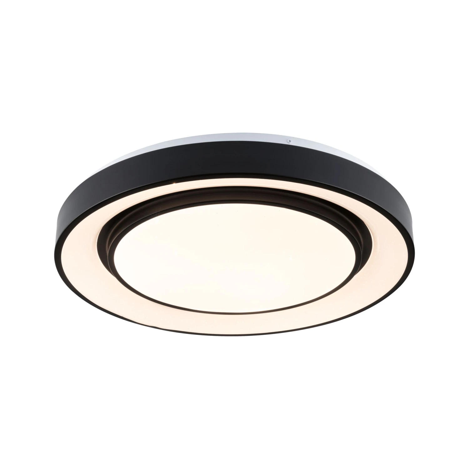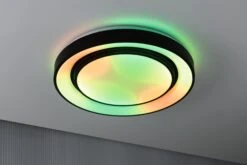 Licht aus purer Magie – Die dimmbare Wohnraumleuchte Rainbow mit Regenbogeneffekt in Schwarz/Weiß mit einer Größe von 475mm zaubert magische Lichteffekte an Decke oder Wand. Sie eignet sich als helle Grundbeleuchtung oder als farbenfroher Blickpunkt im Wohnraum. Der Sternenhimmel sorgt für besondere, interessante Lichteffekte. Über die Tunable White Funktion lässt sich die Lichtfarbe nach Bedarf einstellen: von tageslichtweißem Arbeitslicht bis hin zu warmweißer Entspannungsbeleuchtung. Mit der Rainbow-Funktion bringt die Leuchte Farbe in jeden Wohnraum und lässt sich je nach Stimmung individuell einstellen. Ob dynamisches oder statisches RGB Licht, die verschiedenen Lichtstimmungen lassen sich mit Hilfe der mitgelieferten IR Fernbedienung einfach steuern und dimmen. Nachts lässt sich ein Nachtlicht mit 5% Lichtauslass einstellen.