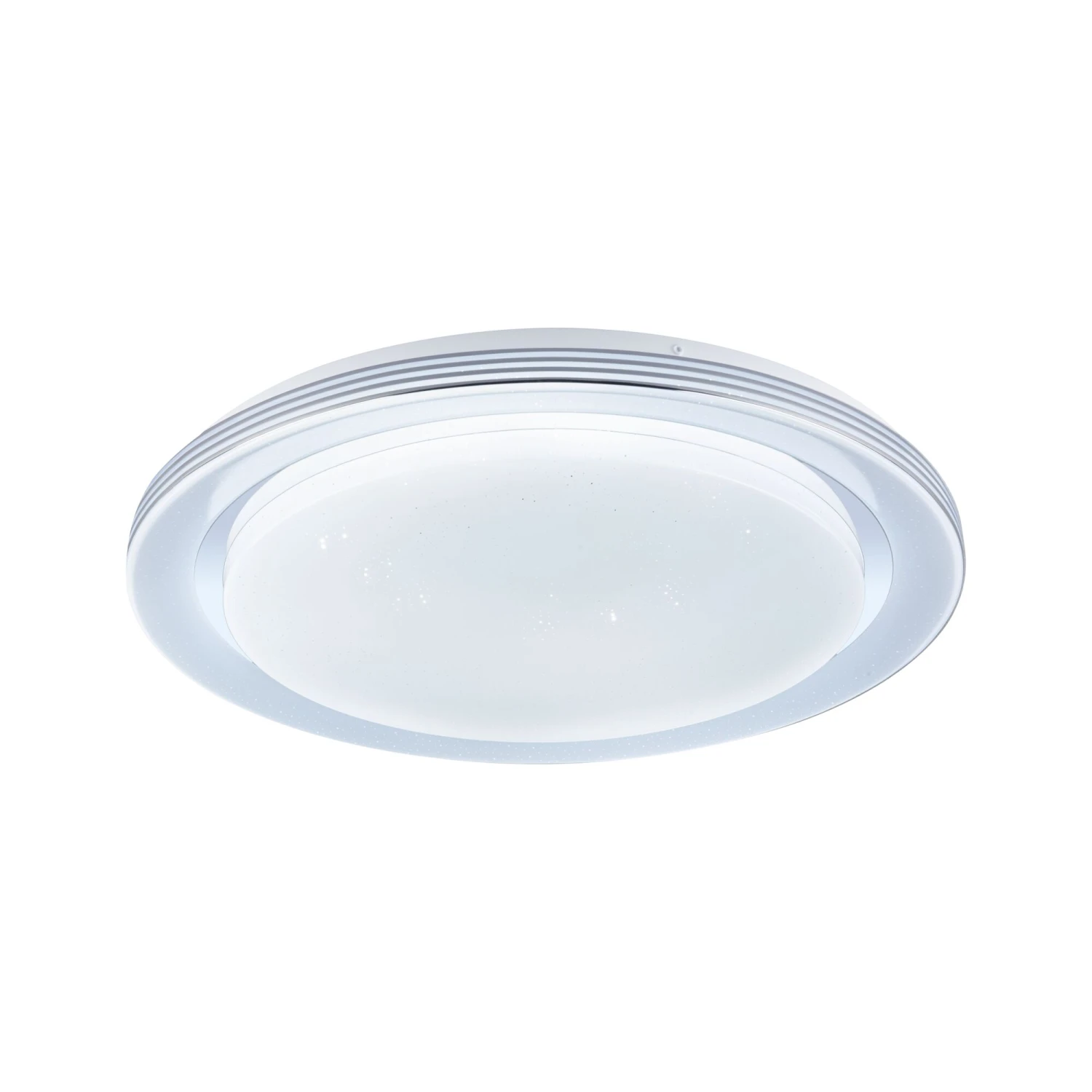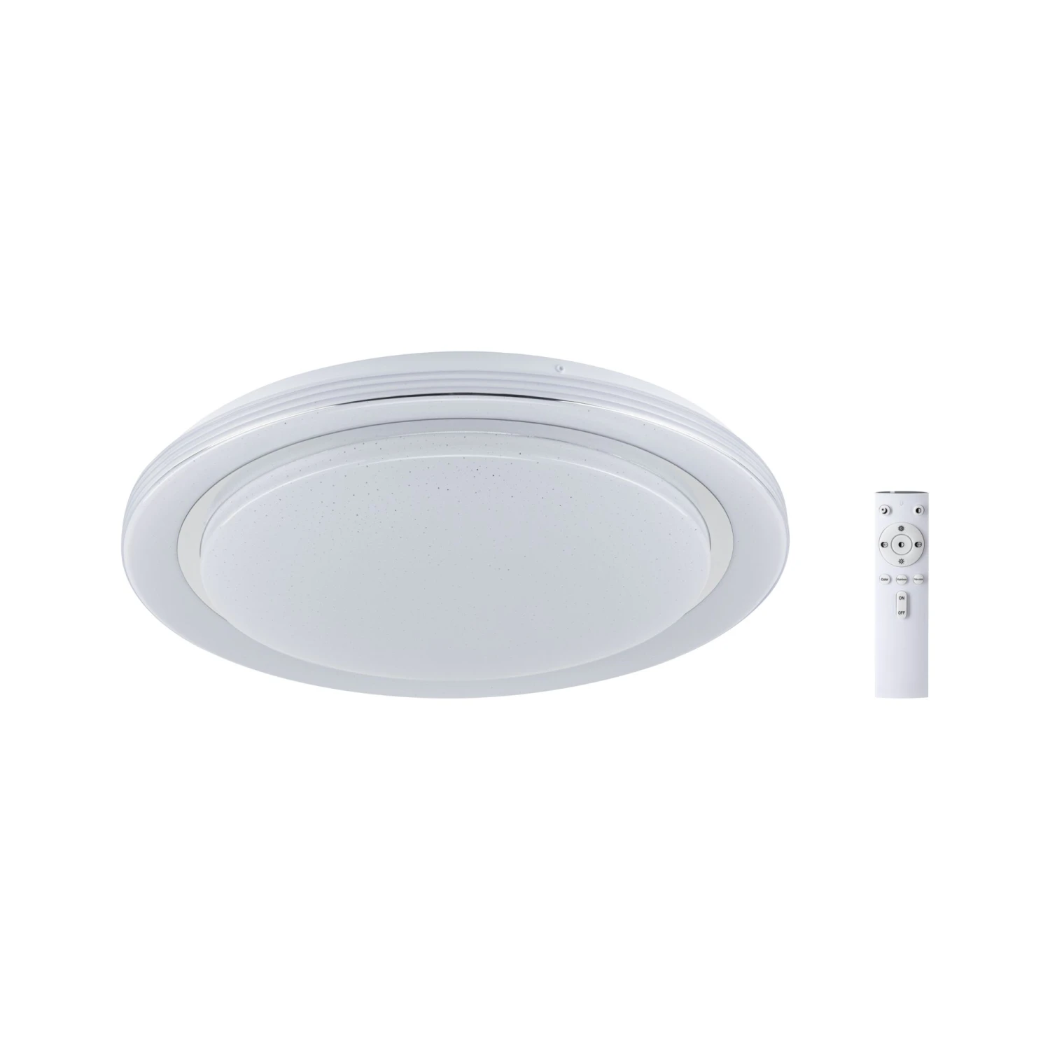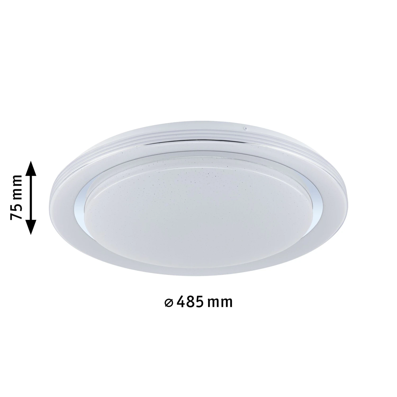 Licht aus purer Magie – Die dimmbare Wohnraumleuchte Rainbow mit Regenbogeneffekt in Chrom/Weiß mit einer Größe von 485mm zaubert magische Lichteffekte an Decke oder Wand. Sie eignet sich als helle Grundbeleuchtung oder als farbenfroher Blickpunkt im Wohnraum. Der Sternenhimmel sorgt für besondere, interessante Lichteffekte. Über die Tunable White Funktion lässt sich die Lichtfarbe nach Bedarf einstellen: von tageslichtweißem Arbeitslicht bis hin zu warmweißer Entspannungsbeleuchtung. Mit der Rainbow-Funktion bringt die Leuchte Farbe in jeden Wohnraum und lässt sich je nach Stimmung individuell einstellen. Ob dynamisches oder statisches RGB Licht, die verschiedenen Lichtstimmungen lassen sich mit Hilfe der mitgelieferten IR Fernbedienung einfach steuern und dimmen. Nachts lässt sich ein Nachtlicht mit 5% Lichtauslass einstellen.