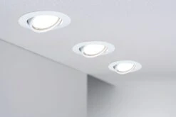 Base Einbaustrahler 3x5W in Weiß, sind robuste und anwenderfreundliche Einbaustrahler aus Metall, die sich sowohl für Neuinstallationen als auch für den Austausch bestehender Installationen eignen. Dank 230V-Direktanschluss, können Sie die Leuchten ganz einfach uneingeschränkt miteinander verketten. Im Lieferumfang sind austauschbare Coin LED Leuchtmittel enthalten, die mit ihrem warmweißen Licht für ein stimmungsvolles Ambiente sorgen.