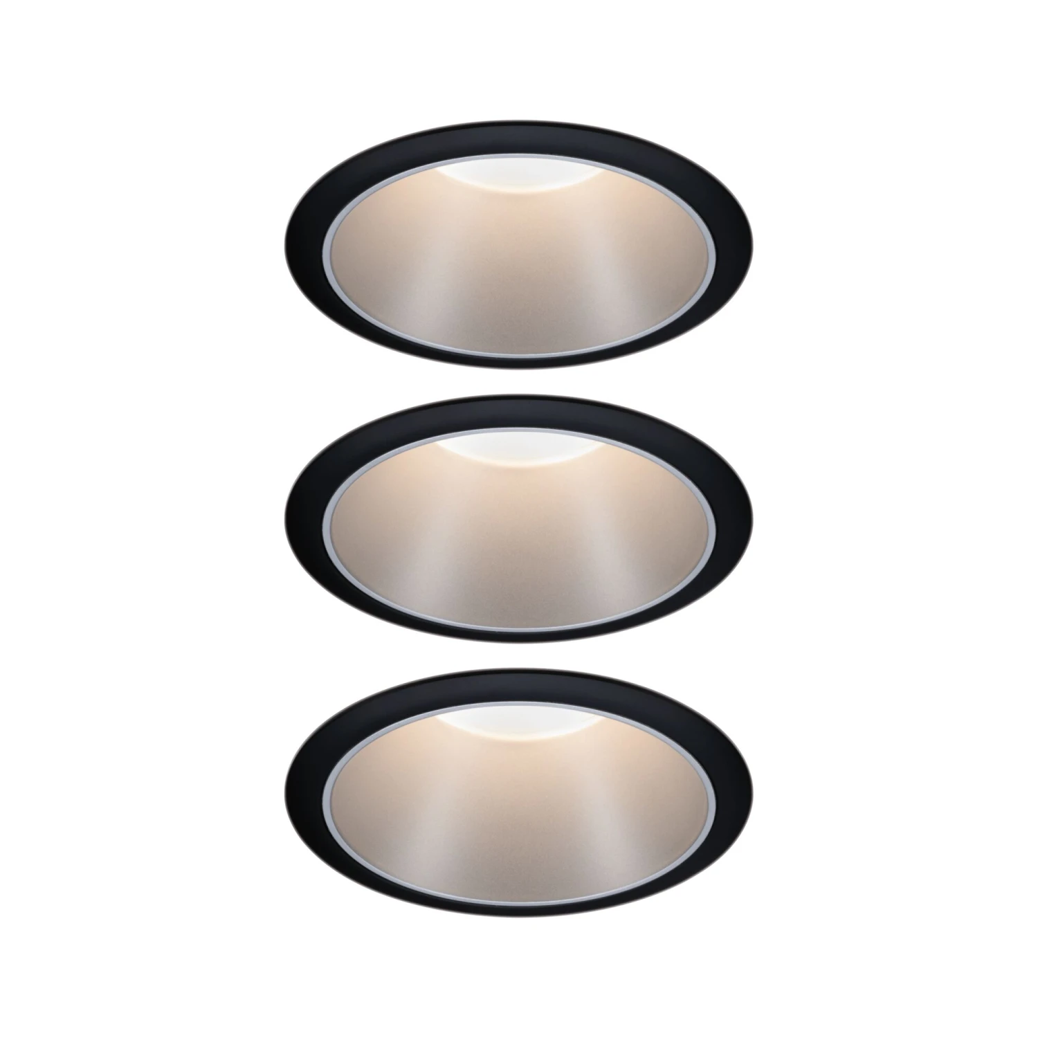 Liebe auf den zweiten Blick! Die Einbauleuchten Cole in Schwarz/Silber verschmelzen durch die zurückgesetzten Leuchtmittel nahezu mit der Decke. Hat man sie aber entdeckt, möchte man gar nicht mehr wegschauen. Das Licht der zurückgesetzten Coins auf der matten, silbernen Oberfläche, sorgt für weiche und blendfreie Beleuchtung. Zusätzlich punkten sie mit brillanter Technik: Die wechselbaren LED Coins liefern angenehm warmweißes Licht und lassen sich mit einem herkömmlichen Lichtschalter in drei Stufen dimmen.