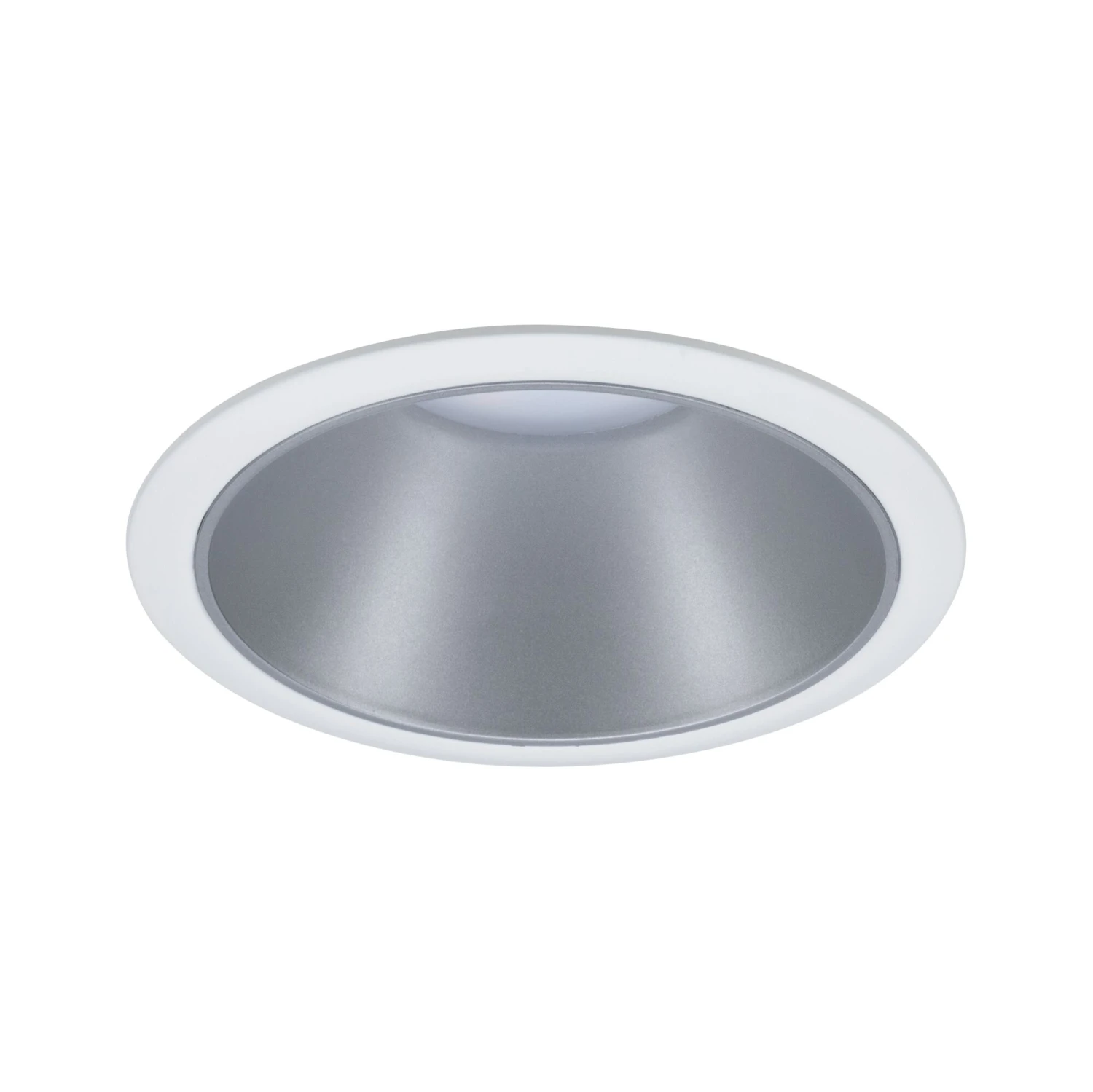 Liebe auf den zweiten Blick! Die Einbauleuchte Cole in Weiß/Silber verschmilzt durch das zurückgesetzte Leuchtmittel nahezu mit der Decke. Hat man sie aber entdeckt, möchte man gar nicht mehr wegschauen. Das Licht des zurückgesetzten Coins auf der matten, silbernen Oberfläche, sorgt für weiche und blendfreie Beleuchtung. Zusätzlich punktet sie mit brillanter Technik: Der wechselbare LED Coin liefert angenehm warmweißes Licht und lässt sich mit einem herkömmlichen Lichtschalter in drei Stufen dimmen.