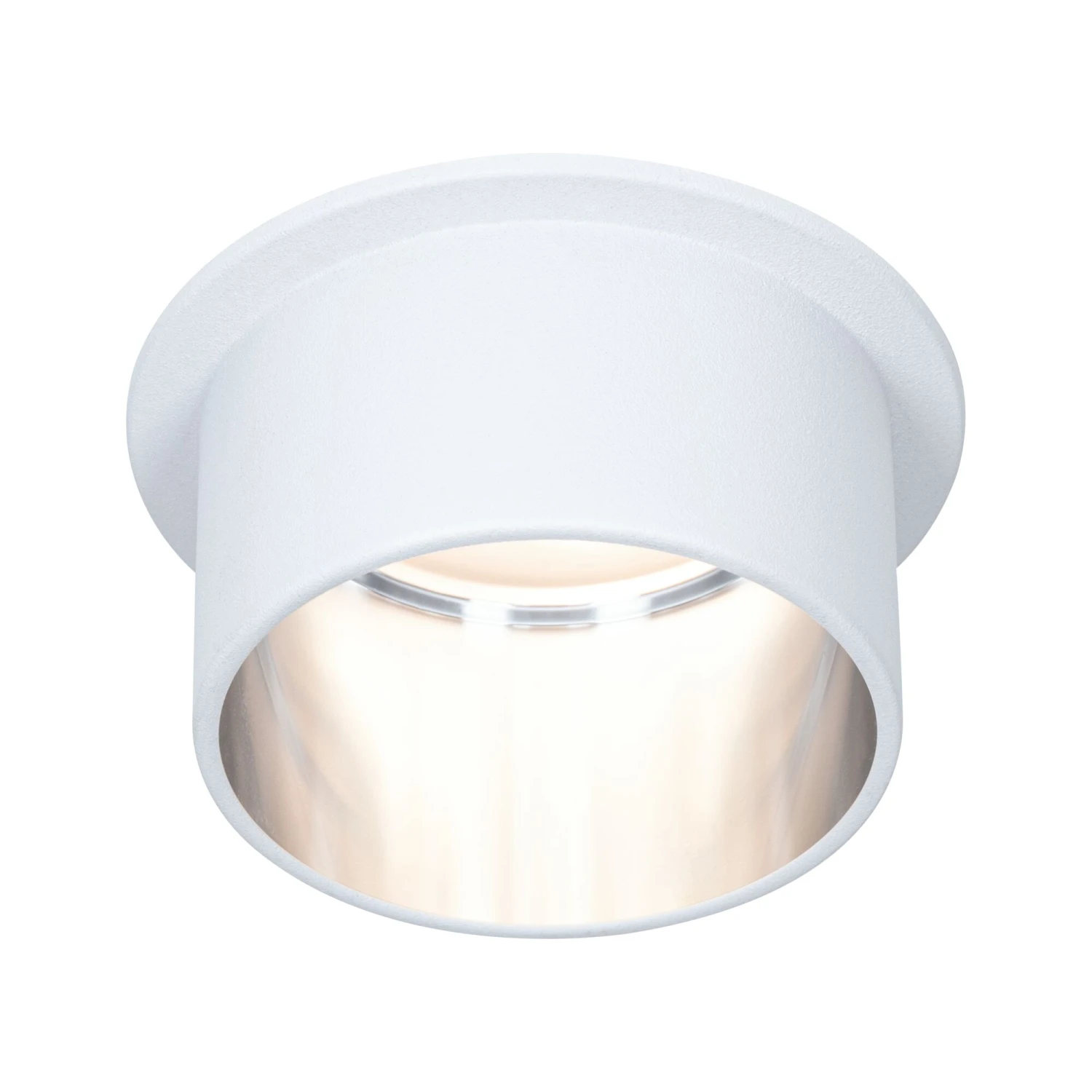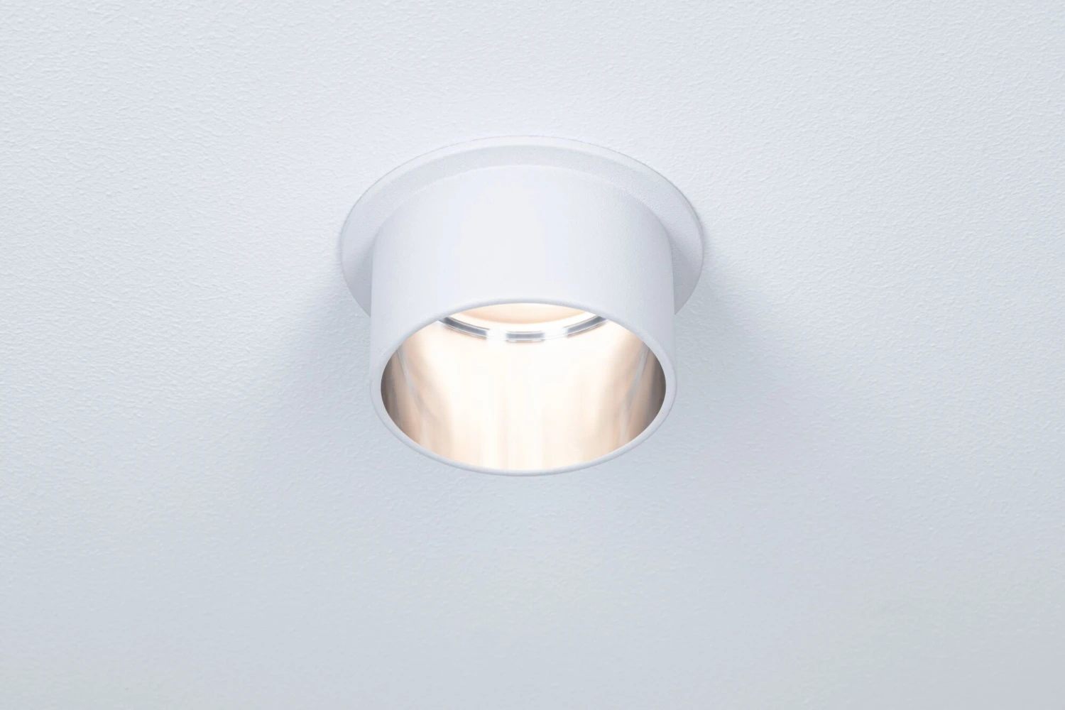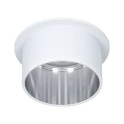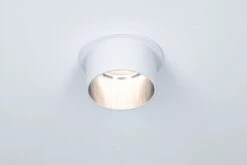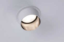 Die dekorative Einbauleuchte Gil in der Farbe Weiß matt/Eisen gebürstet sorgt mit ihrem zweifarbigen Design für Lichthighlights und setzt blendfreie Akzente an der Decke. Durch den hervorstehenden Dekozylinder wird eine geringere Einbautiefe im Vergleich zu den zurückgesetzten Lichtpunkten benötigt. Hat man sie entdeckt, möchte man gar nicht mehr wegschauen. Die Strahler punkten mit brillanter Technik: Die wechselbaren LED Coins liefern angenehm warmweißes Licht, lassen sich mit einem herkömmlichen Lichtschalter in drei Stufen dimmen und sind untereinander unendlich verkettbar. Sie benötigen einen Bohrdurchmesser von 62 mm.
