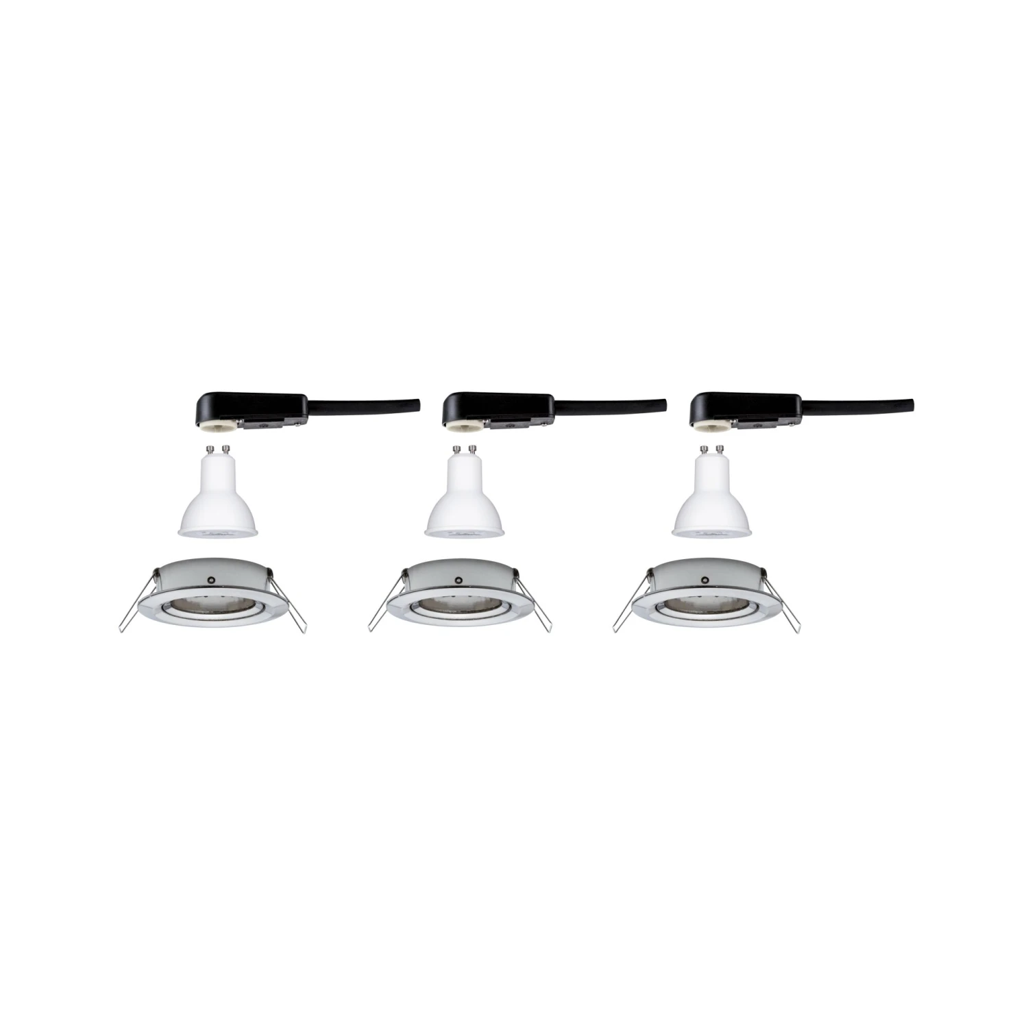 Die runden Nova Einbaustrahler in Eisen gebürstet mit 3×6,5W und 3x460lm, bieten gutes Licht, stimmiges Design und hohe Energieeffizienz. Durch die Schwenkbarkeit lässt sich das Licht überall dort hinlenken, wo es benötigt wird. Die puristische Optik wird nicht von Sprengringen gestört: Da das Leuchtmittel von hinten eingesetzt wird ist kein Sprengring notwendig. Dank 230V-Direktanschluss, können die Leuchten ganz einfach uneingeschränkt miteinander verkettet werden. Durch die unkomplizierte Fixierung mit Haltefedern, bleibt die Zimmerdecke auch nach mehrmaligem Ein- und Ausbau unbeschädigt. Im Lieferumfang sind effiziente und langlebige GU10 LED-Leuchtmittel enthalten, die mit ihrem warmweißen Licht für ein stimmungsvolles Ambiente sorgen. Dank integrierter 3-Step-Dim-Funktion, kann sie durch mehrmaliges Betätigen eines handelsüblichen Lichtschalters in drei Stufen gedimmt werden.