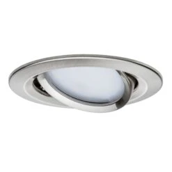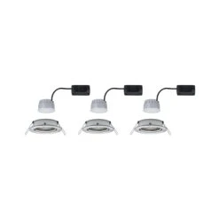 Die runden Nova Einbaustrahler in Eisen gebürstet mit 3x6W und 3x470lm, bieten gutes Licht, stimmiges Design und hohe Energieeffizienz. Durch die Schwenkbarkeit lässt sich das Licht überall dort hinlenken, wo es benötigt wird. Die puristische Optik wird nicht von Sprengringen gestört: Da das Leuchtmittel von hinten eingesetzt wird ist kein Sprengring notwendig. Dank 230V-Direktanschluss, können die Leuchten ganz einfach uneingeschränkt miteinander verkettet werden. Durch die unkomplizierte Fixierung mit Haltefedern, bleibt die Zimmerdecke auch nach mehrmaligem Ein- und Ausbau unbeschädigt. Im Lieferumfang sind effiziente und langlebige Coin LED-Leuchtmittel enthalten, die mit ihrem warmweißen Licht für ein stimmungsvolles Ambiente sorgen. Dank integrierter 3-Step-Dim-Funktion, kann sie durch mehrmaliges Betätigen eines handelsüblichen Lichtschalters in drei Stufen gedimmt werden.