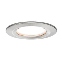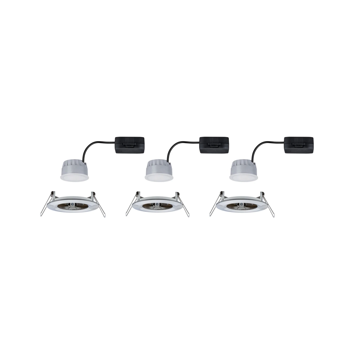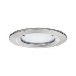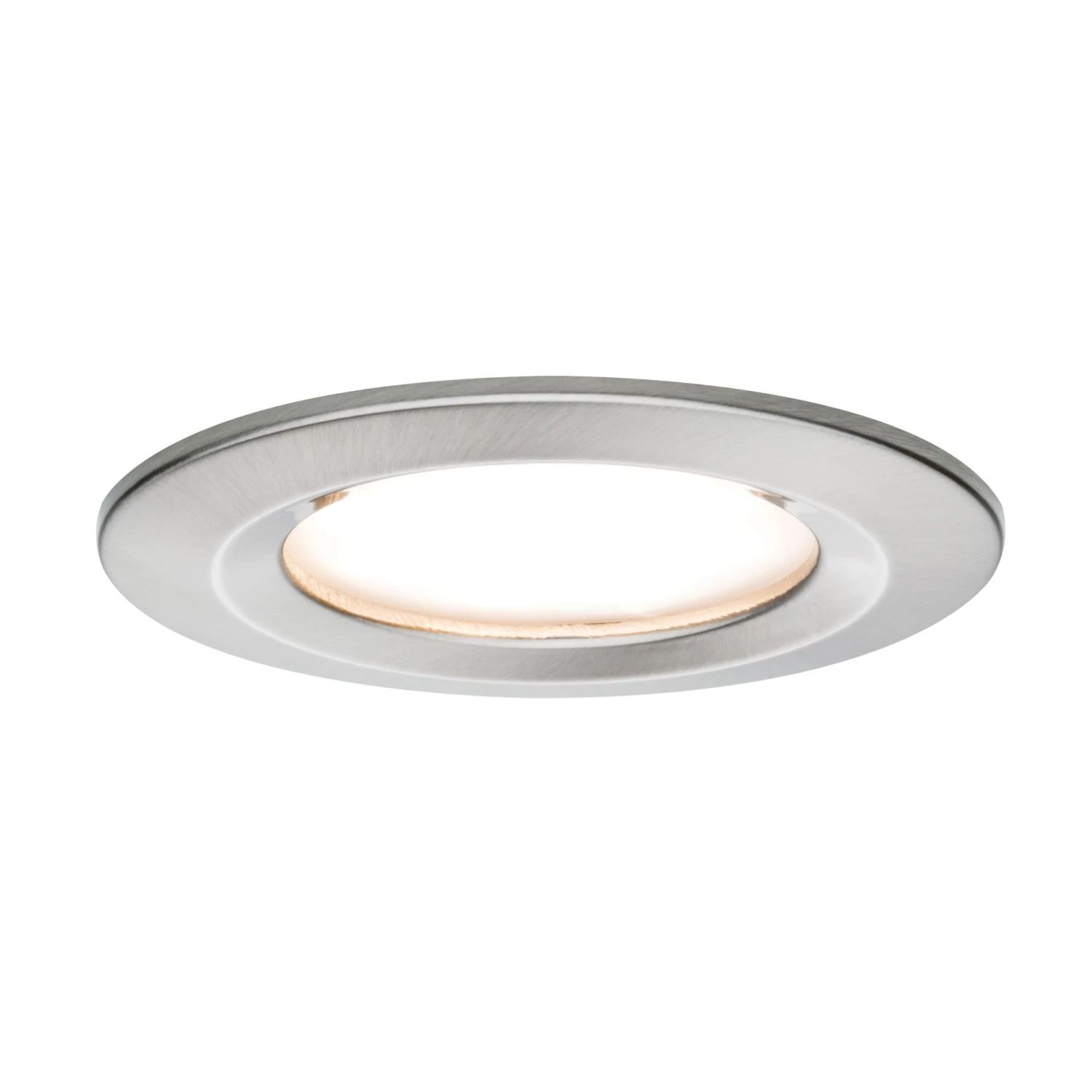 Die runden Nova Einbaustrahler in Eisen gebürstet mit 3x6W und 3x470lm, bieten gutes Licht, stimmiges Design und hohe Energieeffizienz. Die puristische Optik wird nicht von Sprengringen gestört: Da das Leuchtmittel von hinten eingesetzt wird ist kein Sprengring notwendig. Dank 230V-Direktanschluss, können die Leuchten ganz einfach uneingeschränkt miteinander verkettet werden. Durch die unkomplizierte Fixierung mit Haltefedern, bleibt die Zimmerdecke auch nach mehrmaligem Ein- und Ausbau unbeschädigt. Im Lieferumfang sind effiziente und langlebige Coin LED-Leuchtmittel enthalten, die mit ihrem warmweißen Licht für ein stimmungsvolles Ambiente sorgen. Dank integrierter 3-Step-Dim-Funktion, kann sie durch mehrmaliges Betätigen eines handelsüblichen Lichtschalters in drei Stufen gedimmt werden.
