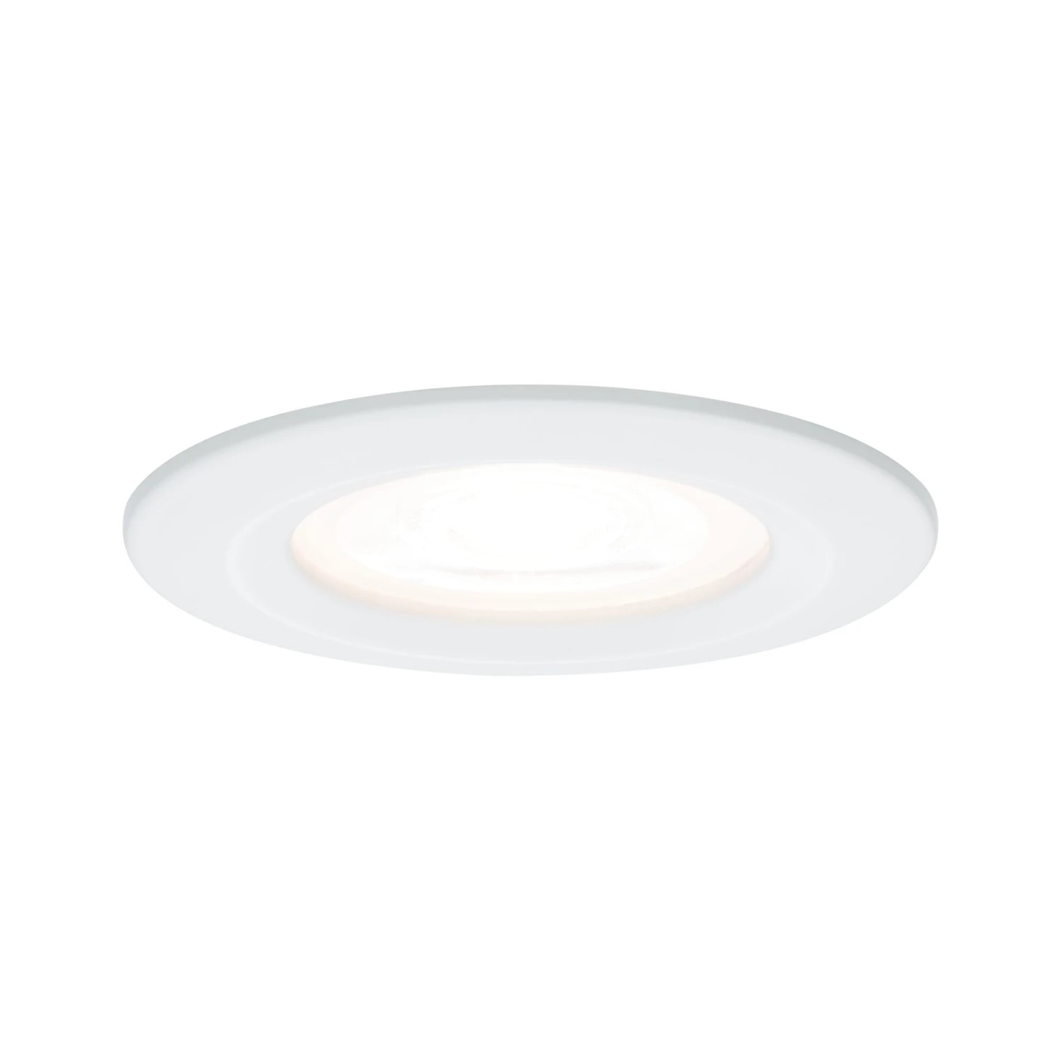 Der runde Nova Einbaustrahler in Weiß matt mit 6,5W und 460lm, bietet gutes Licht, stimmiges Design und hohe Energieeffizienz. Die puristische Optik wird nicht von Sprengringen gestört: Da das Leuchtmittel von hinten eingesetzt wird ist kein Sprengring notwendig. Dank 230V-Direktanschluss, können die Leuchten ganz einfach uneingeschränkt miteinander verkettet werden. Durch die unkomplizierte Fixierung mit Haltefedern, bleibt die Zimmerdecke auch nach mehrmaligem Ein- und Ausbau unbeschädigt. Im Lieferumfang sind effiziente und langlebige GU10 LED-Leuchtmittel enthalten, die mit ihrem warmweißen Licht für ein stimmungsvolles Ambiente sorgen. Dank integrierter 3-Step-Dim-Funktion, kann sie durch mehrmaliges Betätigen eines handelsüblichen Lichtschalters in drei Stufen gedimmt werden.
