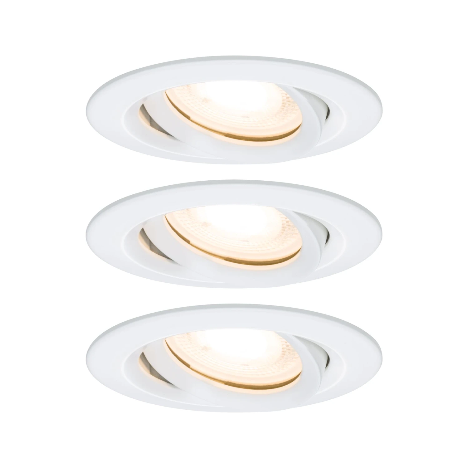 Die runden Nova Plus Einbauleuchten (3er-Set) in Weiß matt inkl. auswechselbarem GU10-Leuchtmittel, eignen sich sowohl für Neuinstallationen als auch für den Austausch bestehender Installationen. Sie können in Decken mit einem Hohlraum von nur 75 Millimetern eingebaut werden. Durch die unkomplizierte Fixierung mit Haltefedern, bleibt die Zimmerdecke auch nach mehrmaligem Ein- und Ausbau unbeschädigt. Die Dimmfunktion ermöglicht eine individuelle Anpassung der Helligkeit und sorgt für warmweißes Arbeitslicht und gemütliche Wohlfühlbeleuchtung in einem. Mit dem IP65-Schutz ist die Leuchte speziell gegen das Eindringen von Strahlwasser geschützt und deshalb ideal für den Einbau in Feuchträumen oder Außenbereich geeignet.