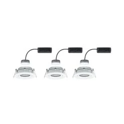 Die runden Nova Plus Einbauleuchten (3er-Set) in Weiß matt mit tauschbarem LED-Coin, eignen sich sowohl für Neuinstallationen als auch für den Austausch bestehender Installationen. Sie sind besonders flach und können deshalb in Decken mit einem Hohlraum von nur 30 Millimetern eingebaut werden. Durch die Verkettung der Einzelleuchten mittels Schnellklemmen, lassen sie sich schnell und einfach einbauen. Die Dimmfunktion ermöglicht eine individuelle Anpassung der Helligkeit und sorgt für warmweißes Arbeitslicht und gemütliche Wohlfühlbeleuchtung in einem. Dank der Schwenkbarkeit können die Spots individuell ausgerichtet werden. Mit dem IP65-Schutz sind die Leuchten speziell gegen das Eindringen von Strahlwasser geschützt und deshalb ideal für den Einbau in Feuchträumen oder Außenbereich geeignet.