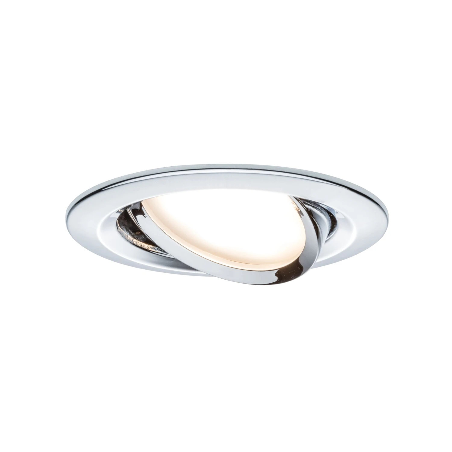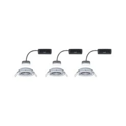 Die runden Nova Plus Einbauleuchten (3er-Set) in Chrom mit tauschbarem LED-Coin, eignen sich sowohl für Neuinstallationen als auch für den Austausch bestehender Installationen. Sie sind besonders flach und können deshalb in Decken mit einem Hohlraum von nur 30 Millimetern eingebaut werden. Durch die Verkettung der Einzelleuchten mittels Schnellklemmen, lassen sie sich schnell und einfach einbauen. Die Dimmfunktion ermöglicht eine individuelle Anpassung der Helligkeit und sorgt für warmweißes Arbeitslicht und gemütliche Wohlfühlbeleuchtung in einem. Dank der Schwenkbarkeit kann der Spot individuell ausgerichtet werden.