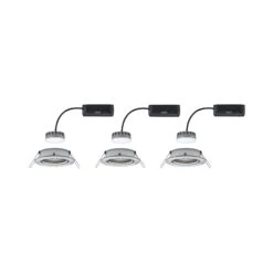 Die runden Nova Plus Einbauleuchten (3er-Set) in Eisen gebürstet mit tauschbarem LED-Coin, eignen sich sowohl für Neuinstallationen als auch für den Austausch bestehender Installationen. Sie sind besonders flach und können deshalb in Decken mit einem Hohlraum von nur 30 Millimetern eingebaut werden. Durch die Verkettung der Einzelleuchten mittels Schnellklemmen, lassen sie sich schnell und einfach einbauen. Die Dimmfunktion ermöglicht eine individuelle Anpassung der Helligkeit und sorgt für warmweißes Arbeitslicht und gemütliche Wohlfühlbeleuchtung in einem. Dank der Schwenkbarkeit kann der Spot individuell ausgerichtet werden.
