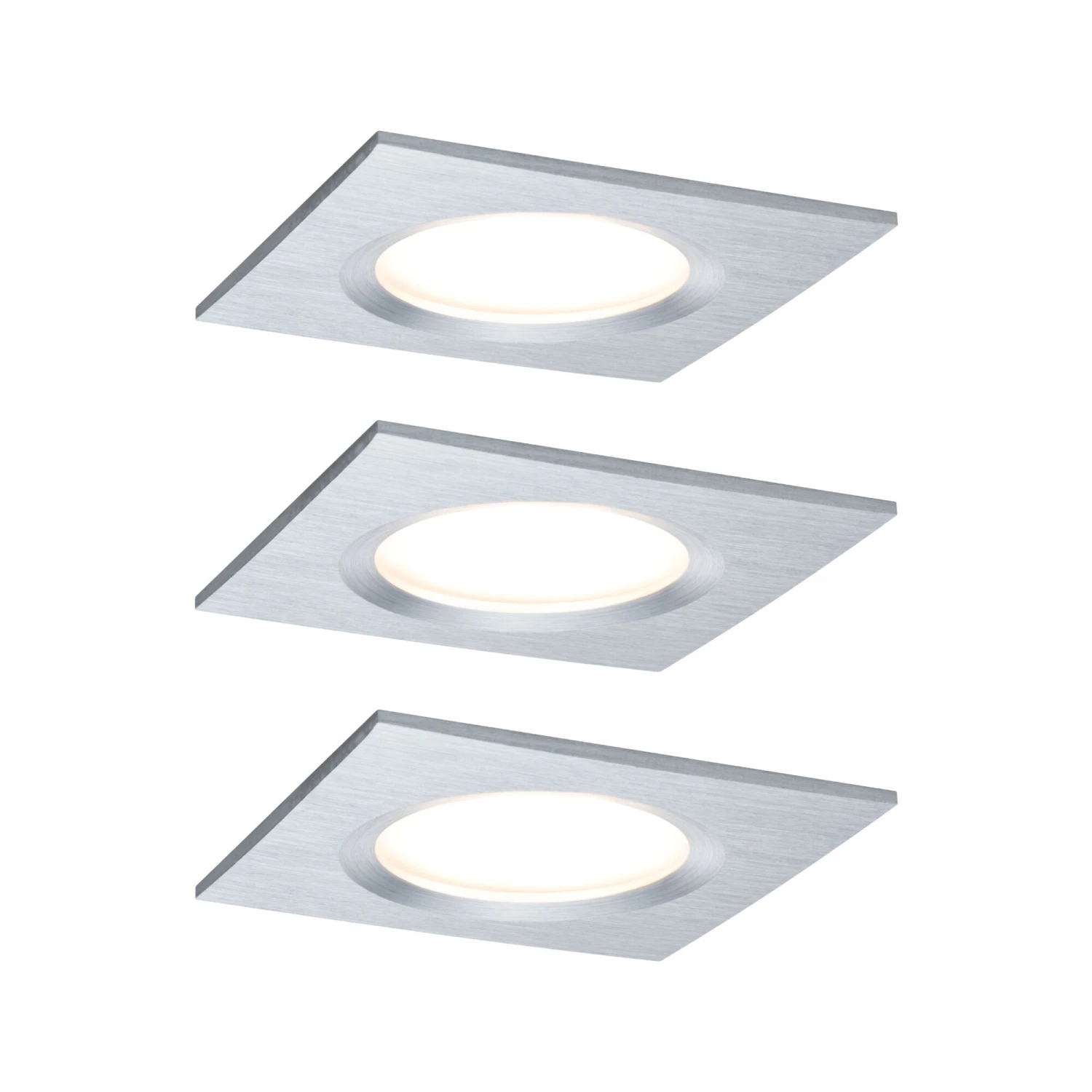 Die eckigen Nova Plus Einbauleuchten (3er-Set) in Alu gedreht mit tauschbarem LED-Coin, eignen sich sowohl für Neuinstallationen als auch für den Austausch bestehender Installationen. Sie sind besonders flach und können deshalb in Decken mit einem Hohlraum von nur 30 Millimetern eingebaut werden. Durch die Verkettung der Einzelleuchten mittels Schnellklemmen, lassen sie sich schnell und einfach einbauen. Die Dimmfunktion ermöglicht eine individuelle Anpassung der Helligkeit und sorgt für warmweißes Arbeitslicht und gemütliche Wohlfühlbeleuchtung in einem. Mit ihrem IP44-Spritzwasserschutz sorgen die Leuchten auch im Badezimmer und in der Küche für wohnliches Licht.