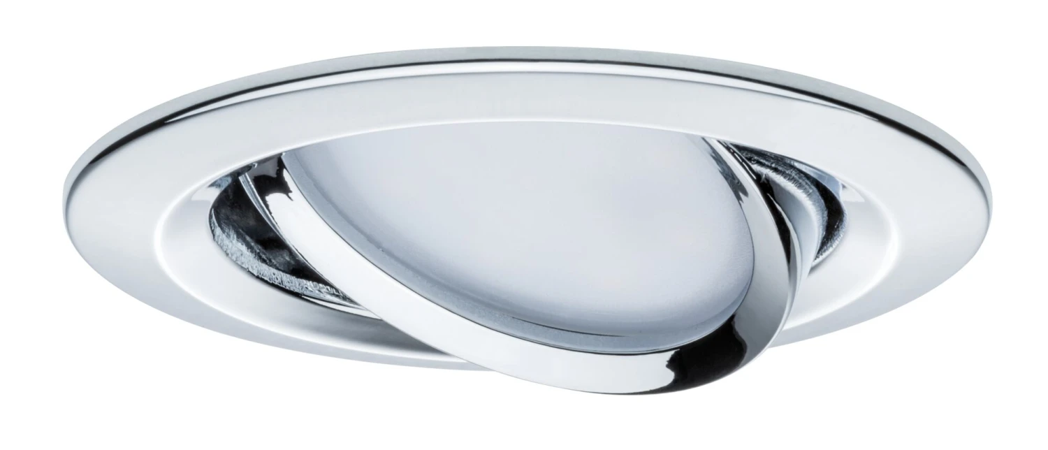 Die runde Nova Plus Einbauleuchte in Chrom mit tauschbarem LED-Coin, eignet sich sowohl für Neuinstallationen als auch für den Austausch bestehender Installationen. Sie ist besonders flach und kann deshalb in Decken mit einem Hohlraum von nur 30 Millimetern eingebaut werden. Durch die Verkettung der Einzelleuchten mittels Schnellklemmen, lassen sie sich schnell und einfach einbauen. Die Dimmfunktion ermöglicht eine individuelle Anpassung der Helligkeit und sorgt für warmweißes Arbeitslicht und gemütliche Wohlfühlbeleuchtung in einem. Dank der Schwenkbarkeit kann der Spot individuell ausgerichtet werden.