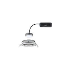 Die runde Nova Plus Einbauleuchte in Eisen gebürstet mit tauschbarem LED-Coin, eignet sich sowohl für Neuinstallationen als auch für den Austausch bestehender Installationen. Sie ist besonders flach und kann deshalb in Decken mit einem Hohlraum von nur 30 Millimetern eingebaut werden. Durch die Verkettung der Einzelleuchten mittels Schnellklemmen, lassen sie sich schnell und einfach einbauen. Die Dimmfunktion ermöglicht eine individuelle Anpassung der Helligkeit und sorgt für warmweißes Arbeitslicht und gemütliche Wohlfühlbeleuchtung in einem. Dank der Schwenkbarkeit kann der Spot individuell ausgerichtet werden.