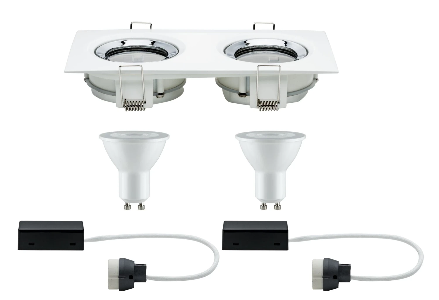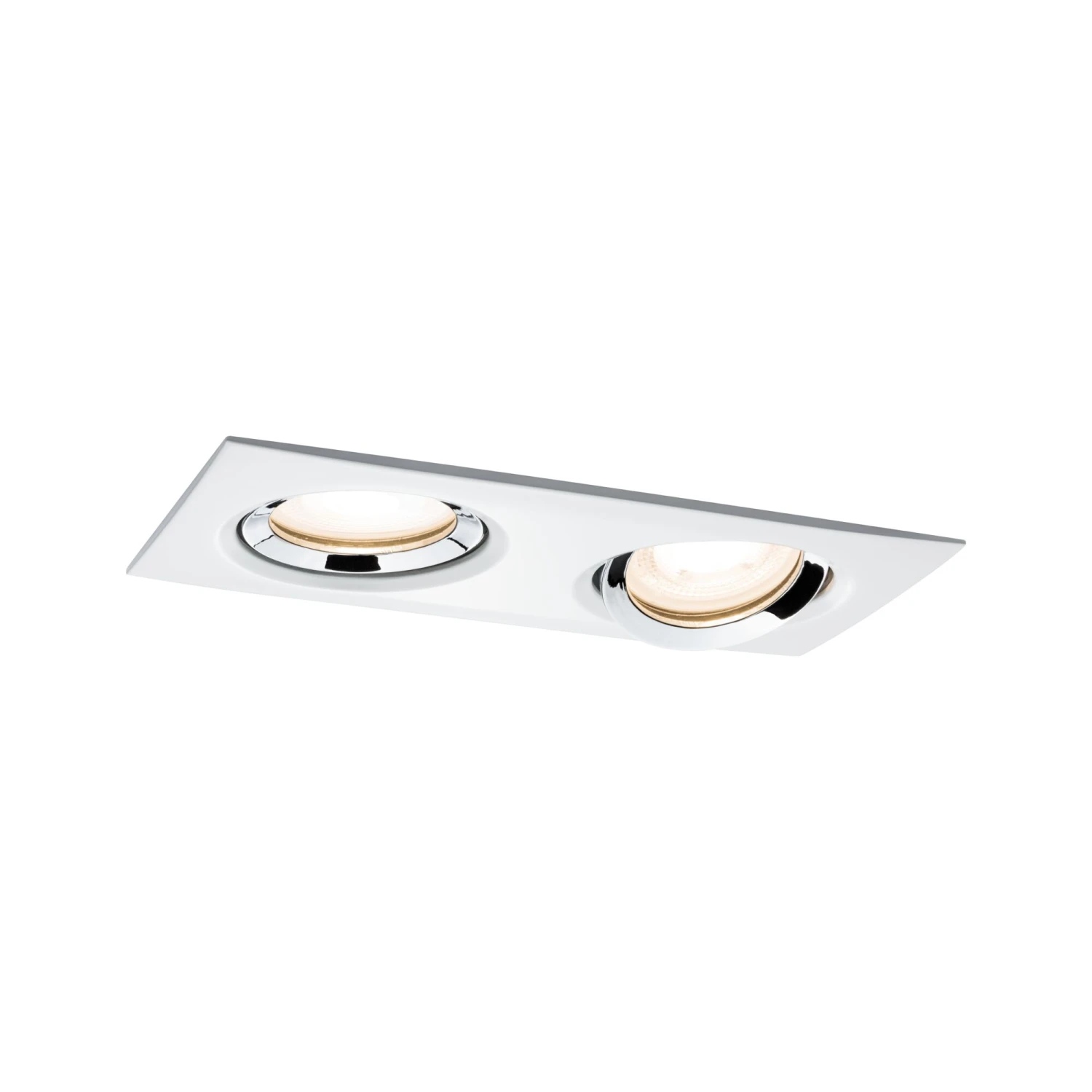 Die eckige Nova Plus Einbauleuchte in Weiß matt/Chrom inkl. auswechselbarem GU10-Leuchtmittel, eignet sich sowohl für Neuinstallationen als auch für den Austausch bestehender Installationen. Sie kann in Decken mit einem Hohlraum von nur 75 Millimetern eingebaut werden. Durch die unkomplizierte Fixierung mit Haltefedern, bleibt die Zimmerdecke auch nach mehrmaligem Ein- und Ausbau unbeschädigt. Die Dimmfunktion ermöglicht eine individuelle Anpassung der Helligkeit und sorgt für warmweißes Arbeitslicht und gemütliche Wohlfühlbeleuchtung in einem. Mit dem IP65-Schutz ist die Leuchte speziell gegen das Eindringen von Strahlwasser geschützt und deshalb ideal für den Einbau in Feuchträumen oder Außenbereich geeignet.