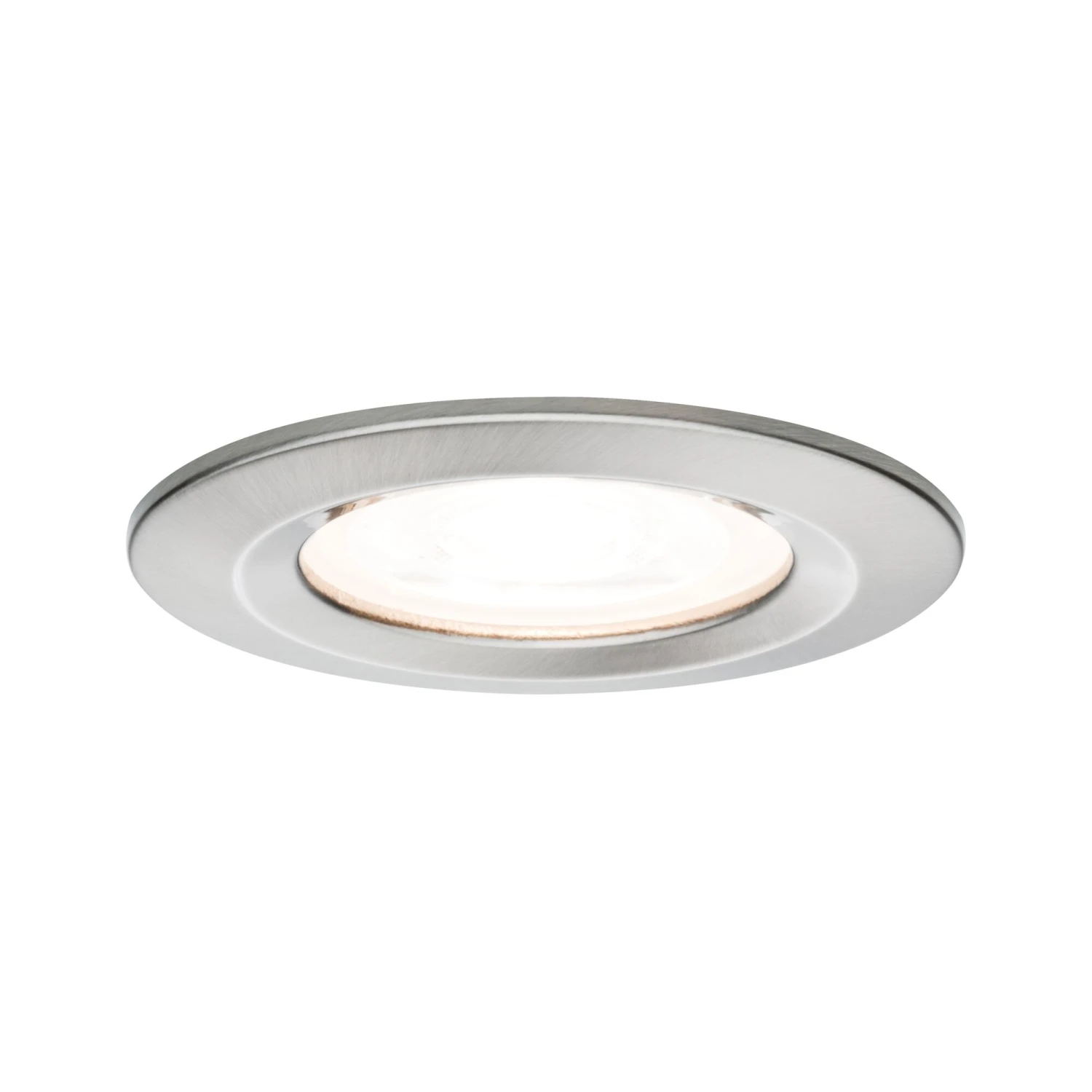 Der runde Nova Einbaustrahler in Eisen gebürstet mit 6,5W und 460lm, bietet gutes Licht, stimmiges Design und hohe Energieeffizienz. Die puristische Optik wird nicht von Sprengringen gestört: Da das Leuchtmittel von hinten eingesetzt wird ist kein Sprengring notwendig. Dank 230V-Direktanschluss, können die Leuchten ganz einfach uneingeschränkt miteinander verkettet werden. Durch die unkomplizierte Fixierung mit Haltefedern, bleibt die Zimmerdecke auch nach mehrmaligem Ein- und Ausbau unbeschädigt. Im Lieferumfang sind effiziente und langlebige GU10 LED-Leuchtmittel enthalten, die mit ihrem warmweißen Licht für ein stimmungsvolles Ambiente sorgen.
