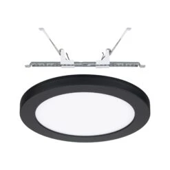 Flächiges Licht zum Einbauen: Dieses schwarze Panel mit einem Durchmesser von 225mm und einer Leistung von 16,5W, leuchtet die Räume gleichmäßig, blendfrei und hell aus. Es lässt sich flexibel und einfach an Wand und Decke anbringen. Das dezente Gehäuse passt sich jedem Einrichtungsstil an. Für eine Bohrlochgröße 50 – 180 mm geeignet.