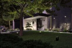 Die Spotleuchte Swivea besticht durch ein einheitlich, zeitgemäßes Design und lässt die Blumen, Sträucher und Bäume in warmweißem Licht erstrahlen. Bei Bedarf lässt sich die Leuchte auch ohne Spieß als Aufbaustrahler für die Beleuchtung von Fassaden, Gartenhäusern und Terrassen verwenden. Durch den kardanischen Schwenkkopf lässt sich die Leuchtrichtung individuell einstellen.