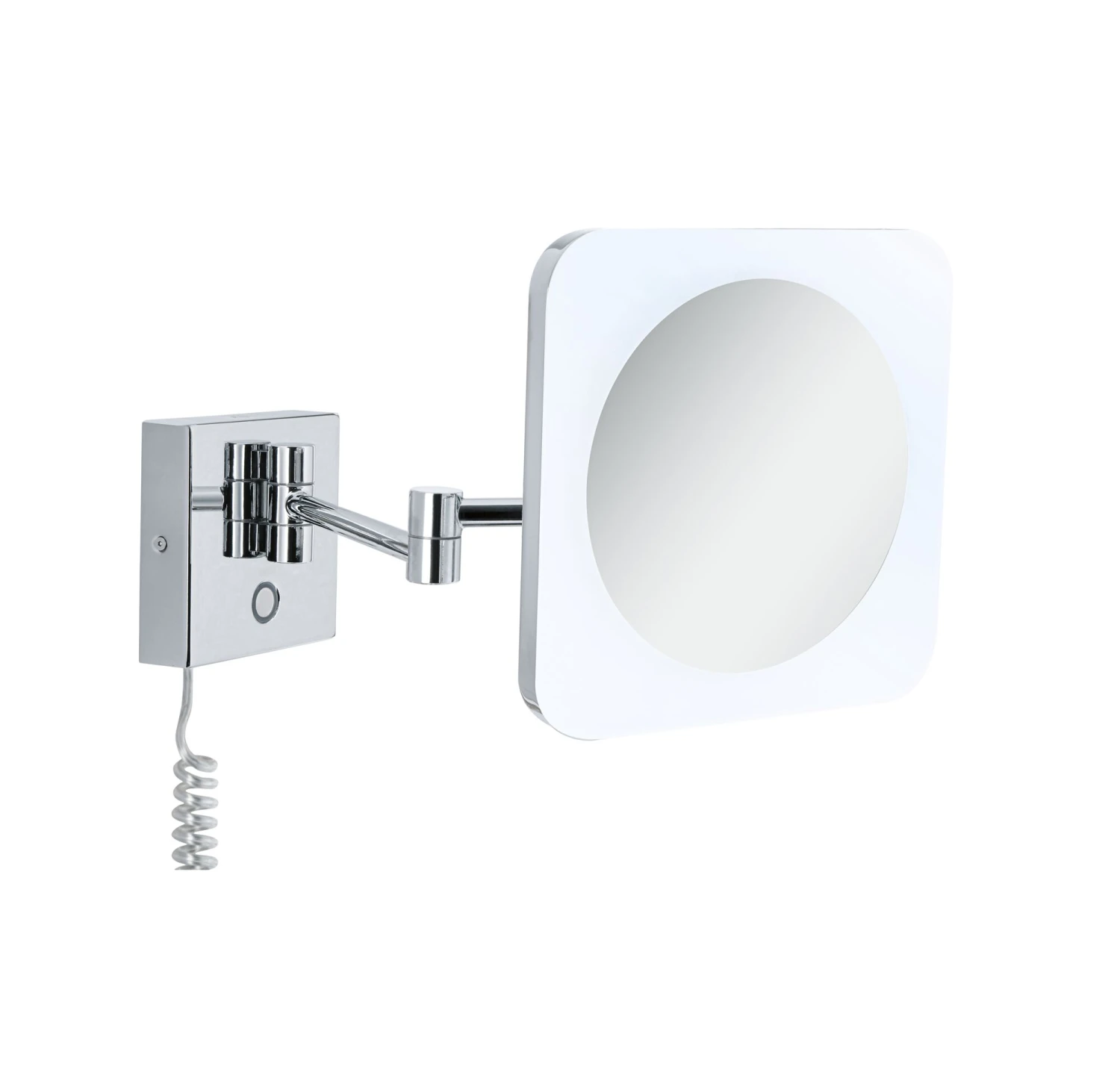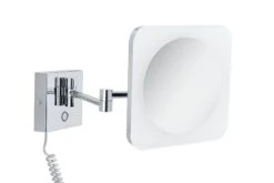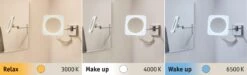 Der beleuchtete Kosmetikspiegel Jora ist ein praktischer Helfer im Badezimmer oder am Schminktisch. Vielfach verstellbar lässt sich Jora ganz nach Bedarf für das Make-up oder die Rasur durch das ausziehbare Gelenk justieren. Genau so schnell lässt sich der Spiegel wieder flach an der Wand einklappen. Dank der WhiteSwitch Funktion lässt sich die Lichtfarbe per Touchschalter an der Leuchte je nach Tageszeit und Bedürfnis einstellen: Tageslichtweiß – Wake up! Neutralweiß – Make up! Warmweiß – Relax! Durch Spritzwasserschutz für den Einsatz im Badezimmer oder Feuchtraum geeignet.